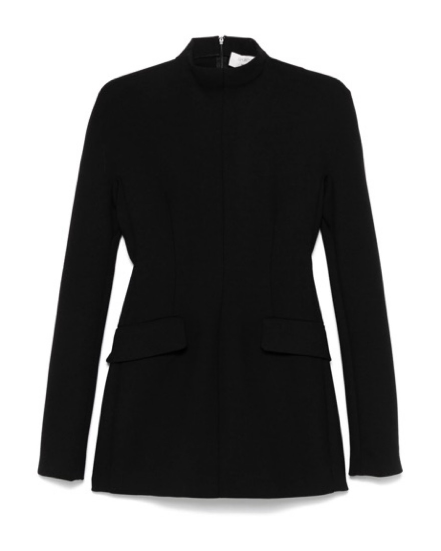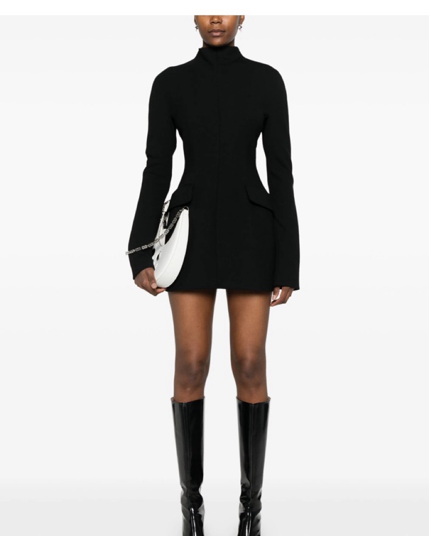 Sportmax Black Mini Dress / high neck / dart detailing / two front flap pockets