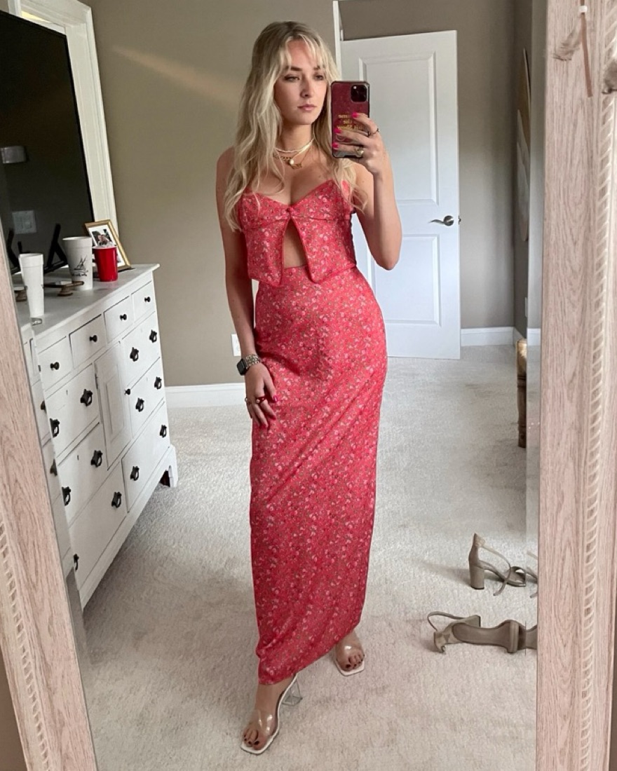 Top is a size small and skirt is XS! Zipper closure for the top and bottom. Great outfit for a wedding or any day activity!