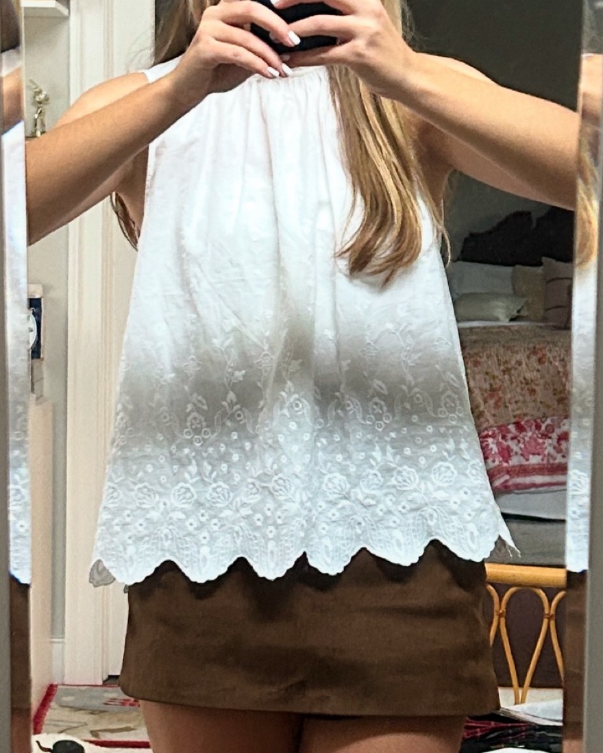 This delicate white lace dress is perfect for a romantic date night or garden party. The intricate embroidered details add a touch of elegance.