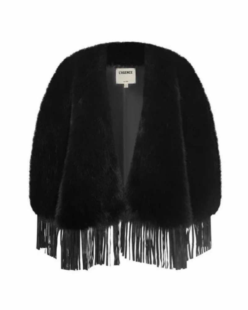 L'Agence Women's Black Faux Fur Cape