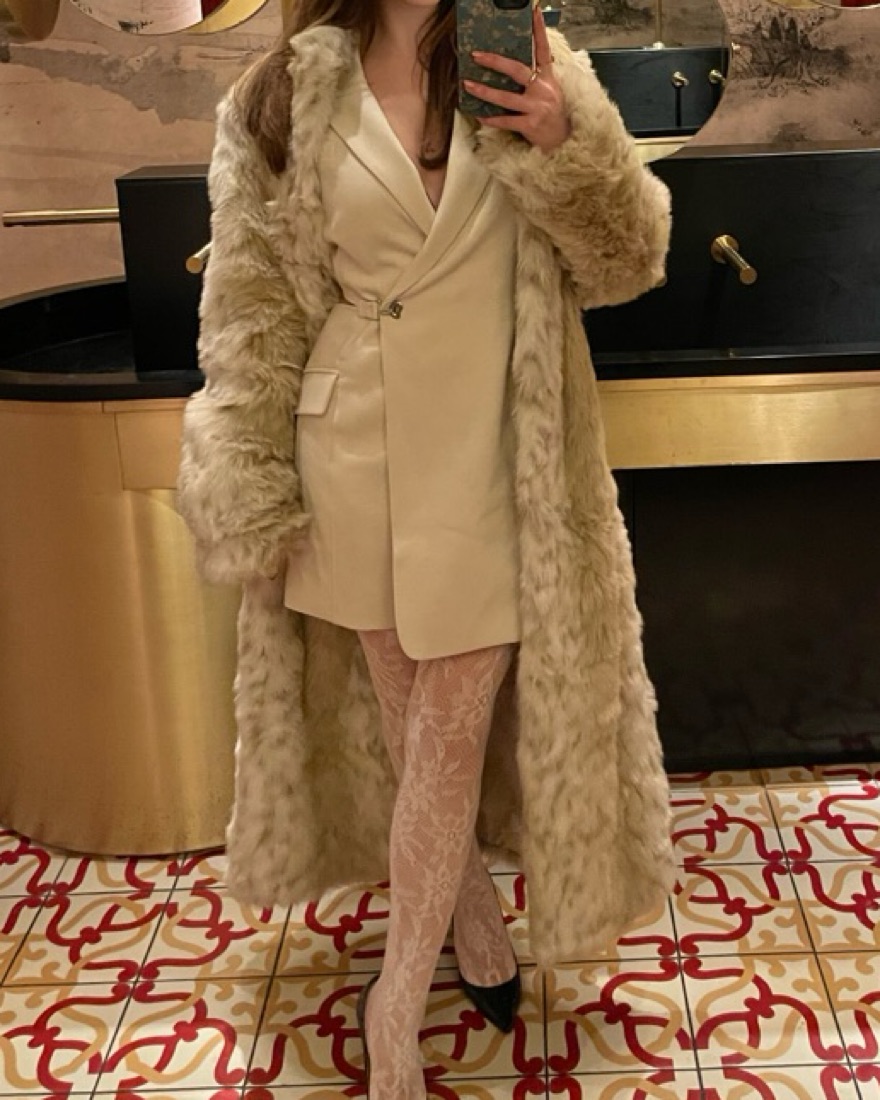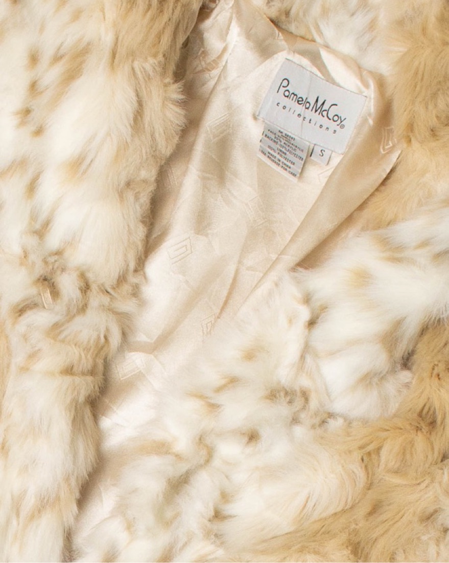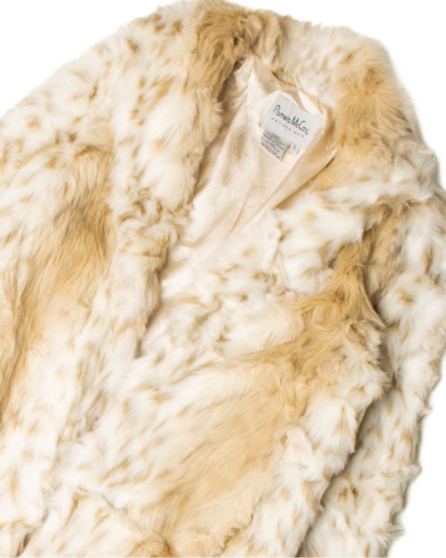 faux fur coat jacket, excellent condition, please no perfumes or tanner! perfect for incoming mob wife era trend. tagged as revolve, but it is vintage Pamela McCoy. 46.5 inch length.