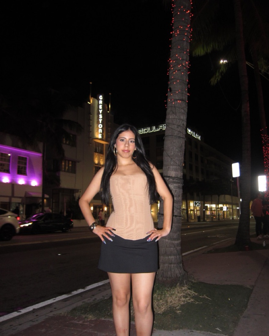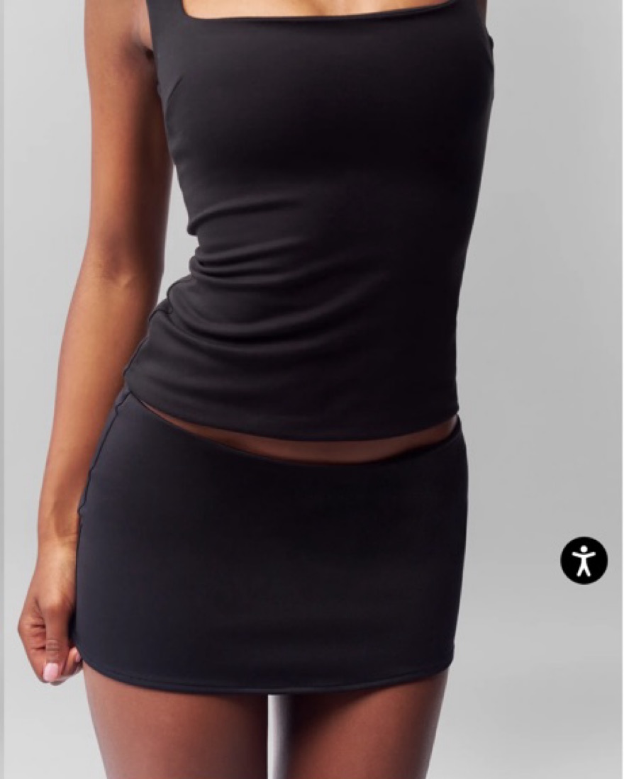 The PERFECT black mini skirt for a night out!! Skirt is double lined with built in panty lining. Size: M; Skirt has an elastic band so the stretch could accommodate up to size L.
