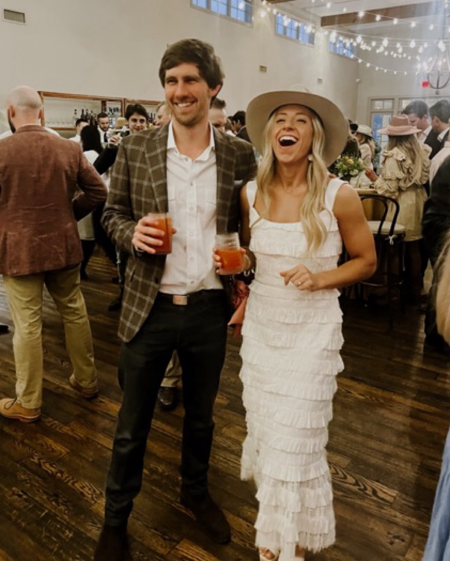 Worn once. Custom made with tapered straps instead of bows. Ivory layered ruffle panel corset dress with A-line skirt, scoop neckline and back, ruffled flounce hem, fully lined.