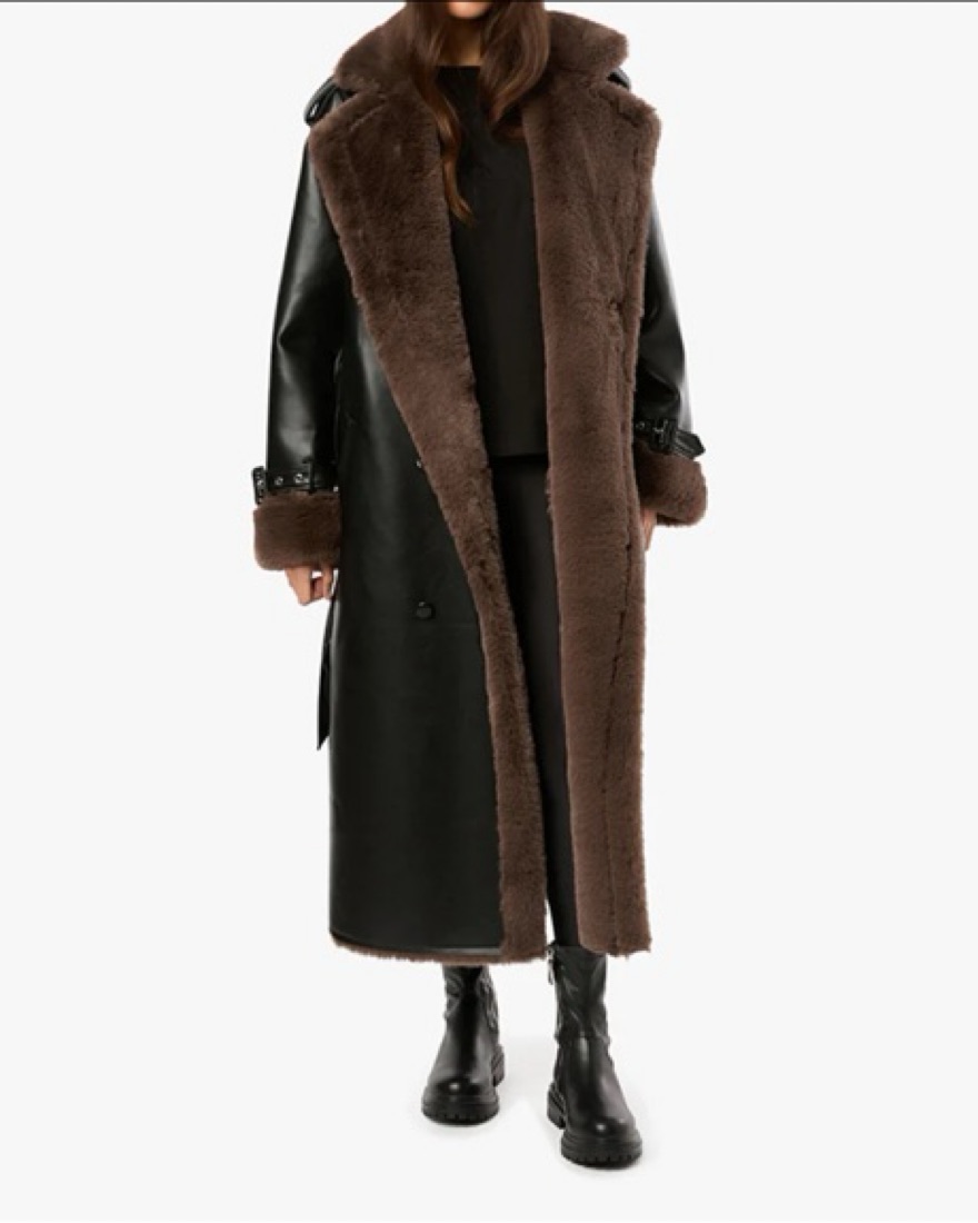 This stunning faux fur-lined leather trench coat exudes sophistication and glamour. It's the perfect outerwear piece for elevating any winter ensemble.