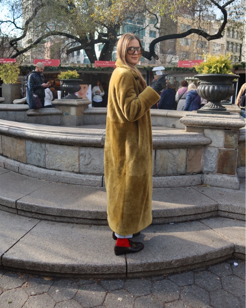Chartreuse 100% lamb fur coat size 38 FR (equals S/M US)
