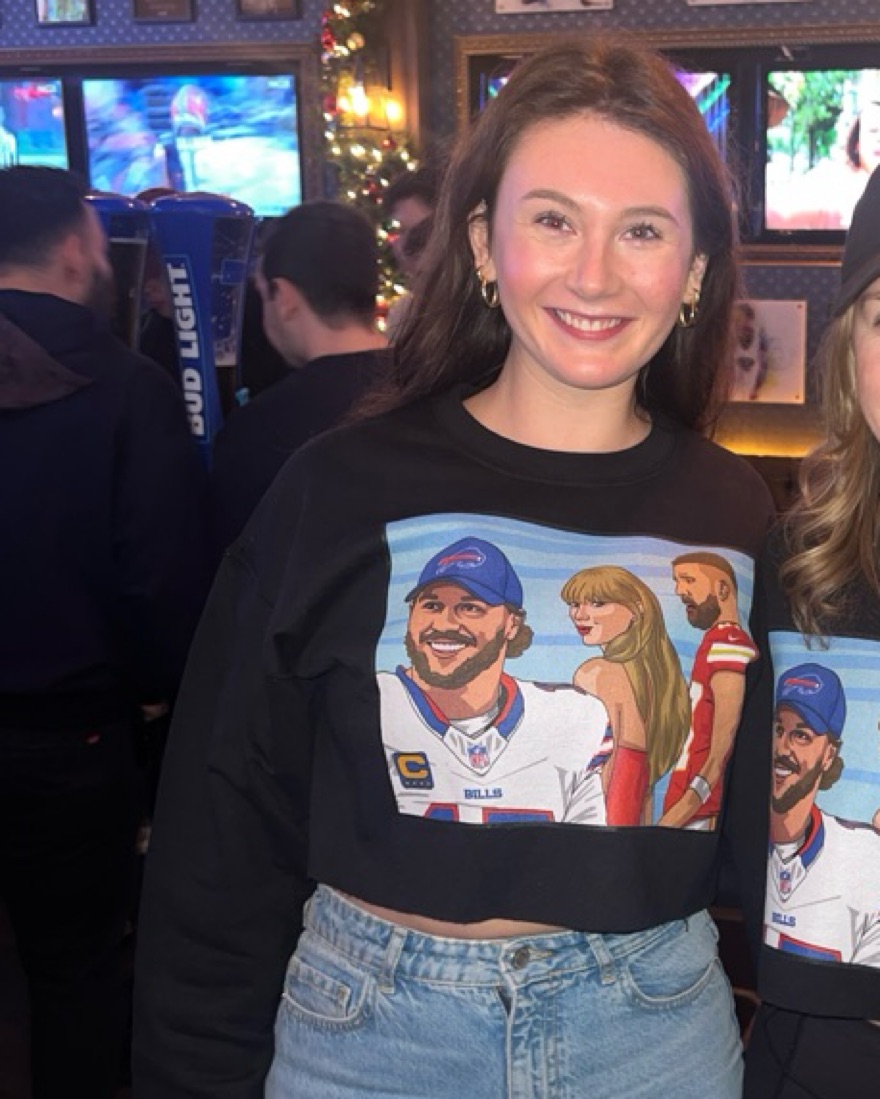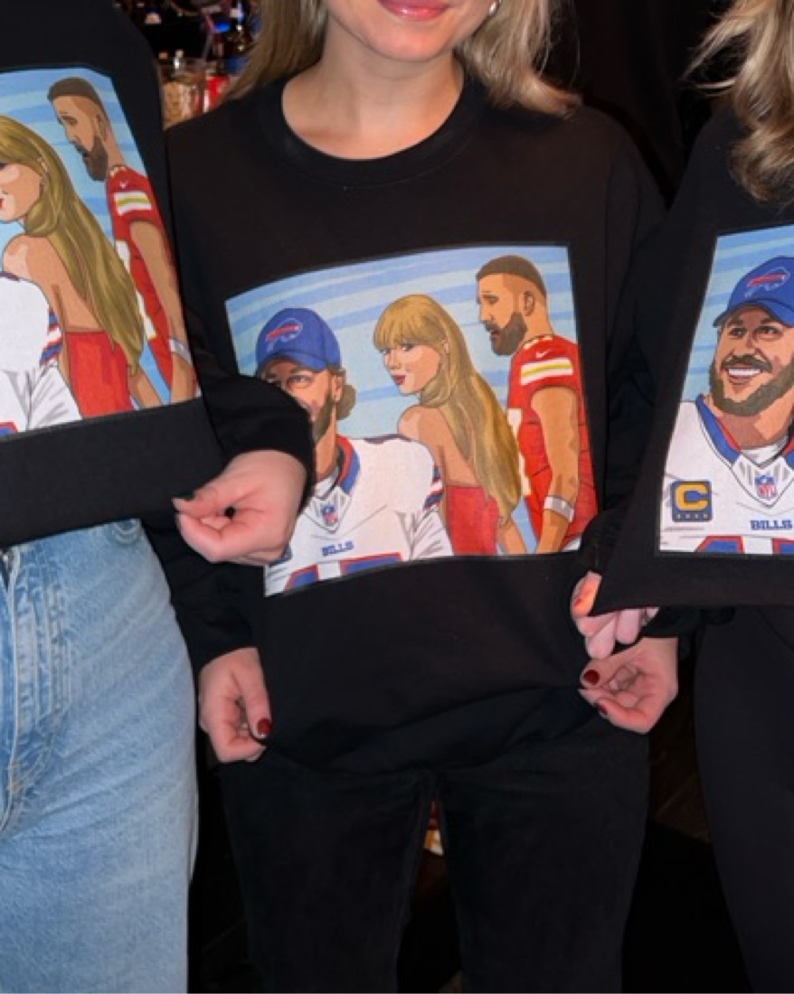 Josh Allen / Taylor Swift / Travis Kelce meme cropped sweatshirt
