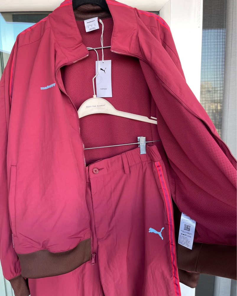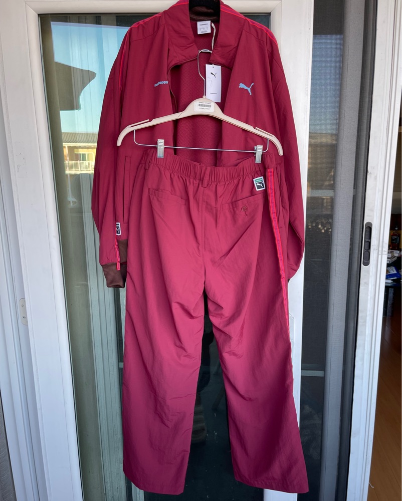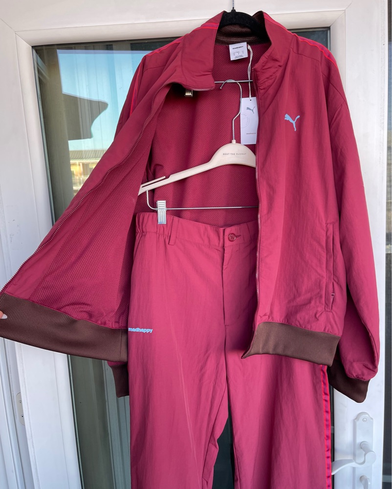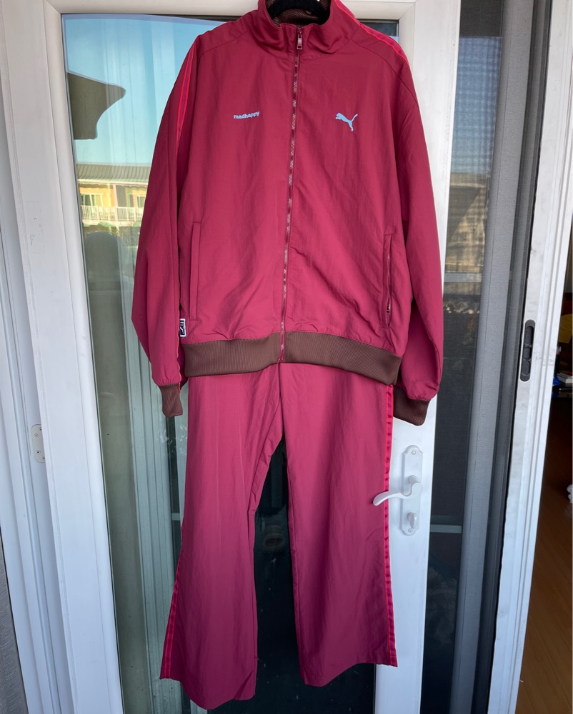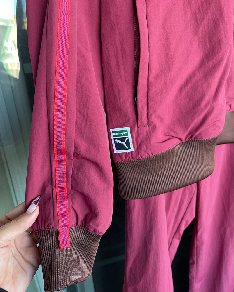 This bold burgundy Puma tracksuit is perfect for an energetic workout or a casual streetwear look. The moisture-wicking fabric and relaxed fit make it both stylish and comfortable.