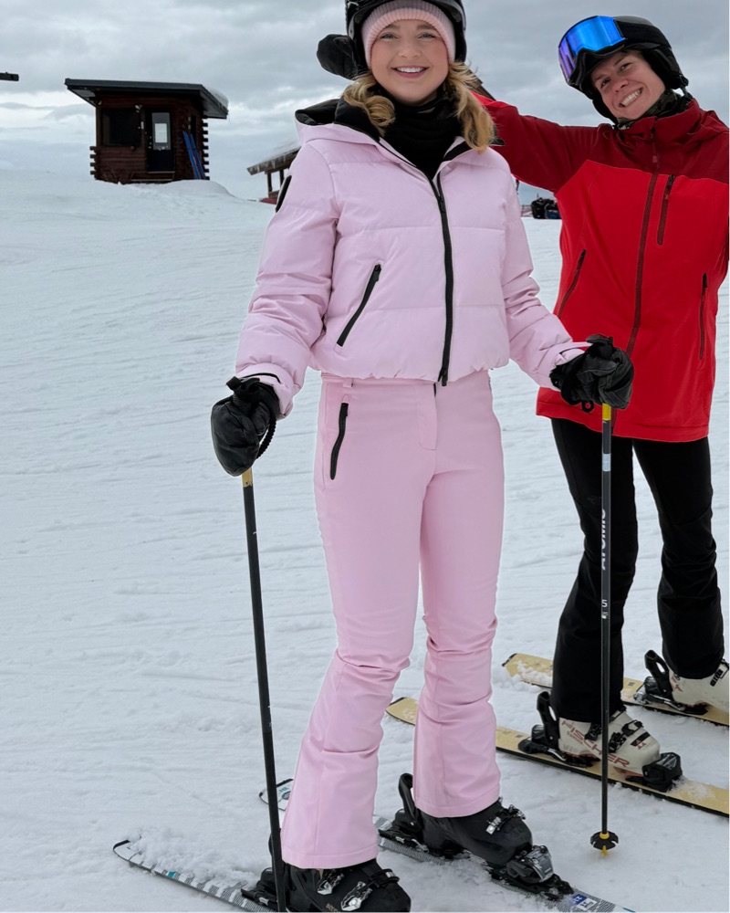 2025 collection. Technical gear. Very cute and warm! The pants have a slight tear on the bottom from skis. I wear a size 4 and the medium is perfect.