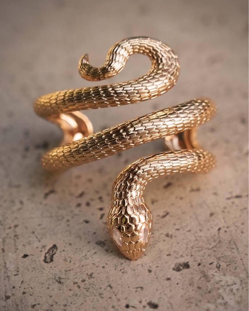 The Serpentina Cuff coils around the wrist with sinuous elegance, embodying the mystique of a serpent's graceful form. Clear Crystal With 18k Gold Plating. Perfect condition. For sale, not rent. Retails for $135 + shipping. Comes with brand dust bag.