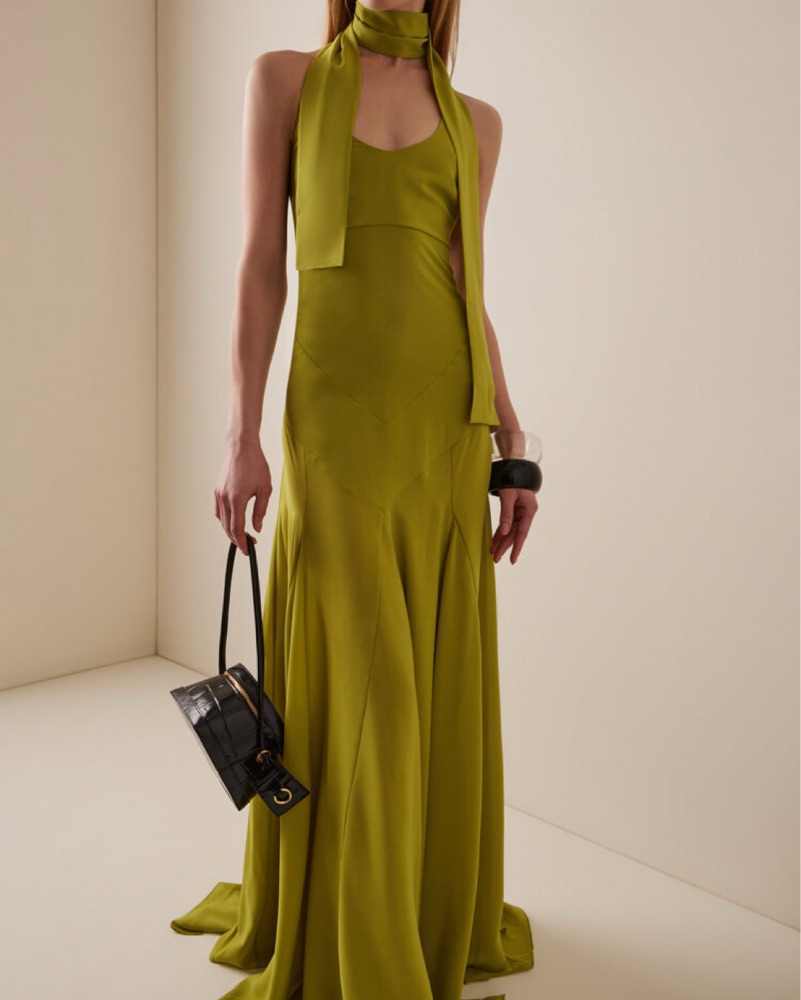 Siedres Raye Scarf Halter Gown by SIEDRES - Pickle
