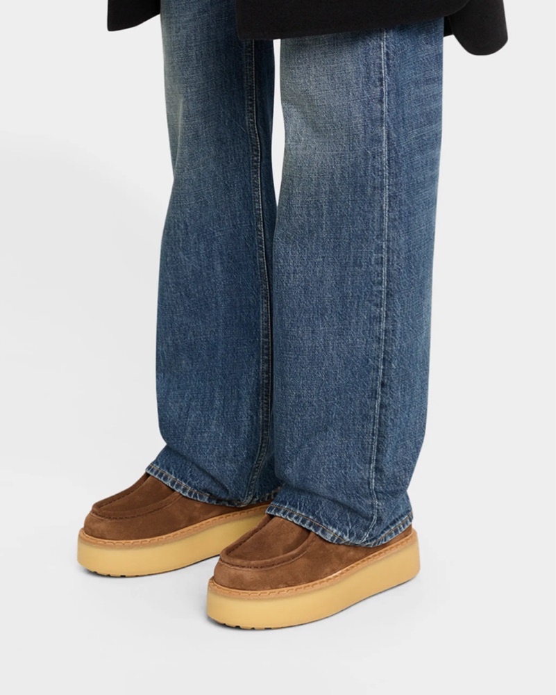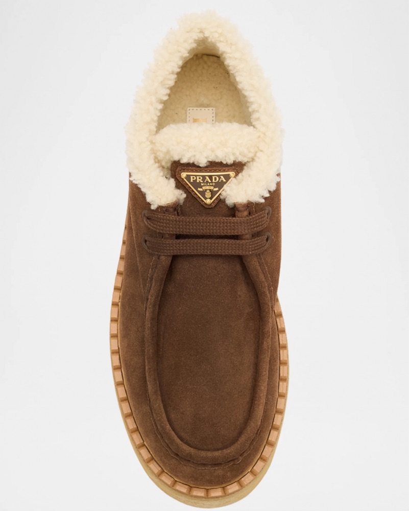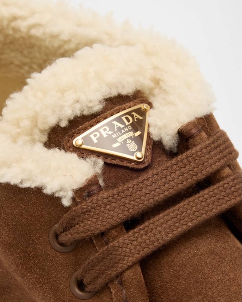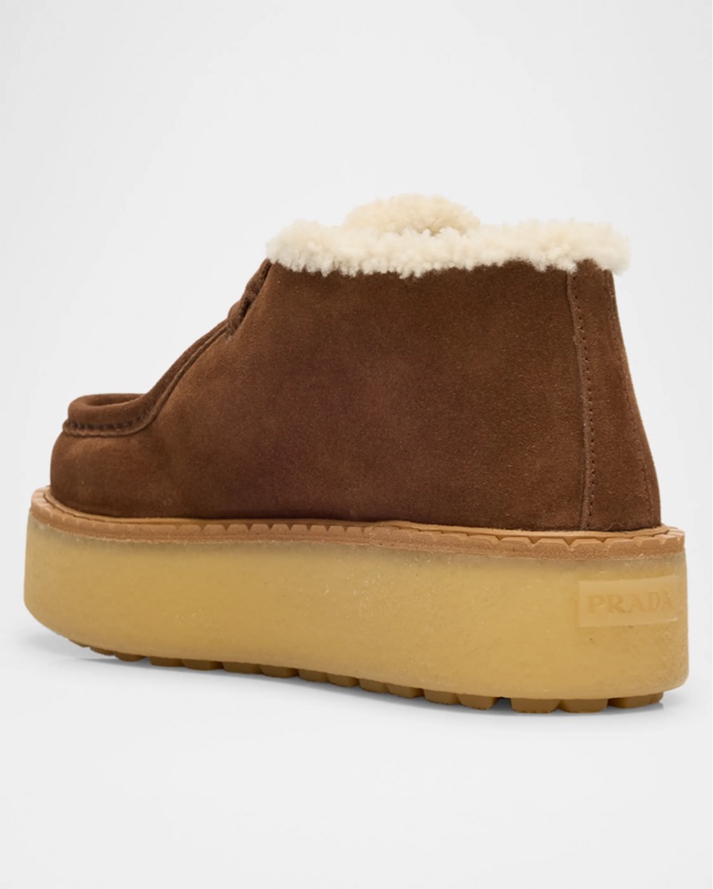 (Size 41 ) Prada suede platform booties with dyed shearling (Italy) trim