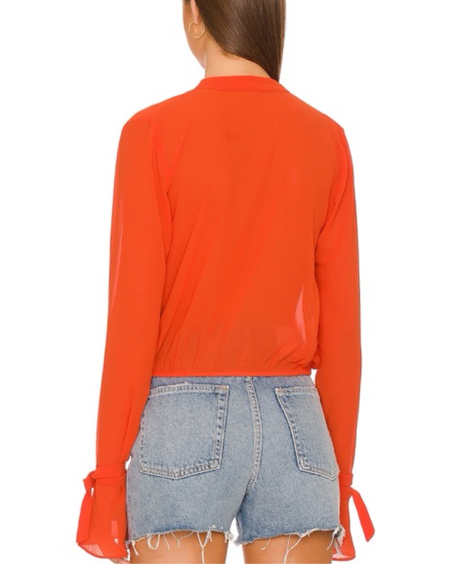 Beautiful orange blouse, you can adjust the waist to make it as cropped as you’d like