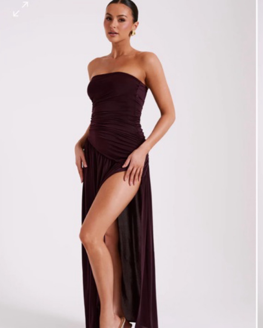 the gorg maroon color is perfect for vday 🤔 and the slit is stunning