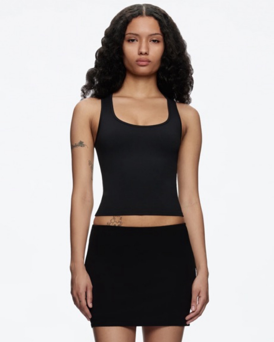Racerback tank top with scooped neckline Slightly cropped body and Soft feel, strong hold, and a matte finish So flattering