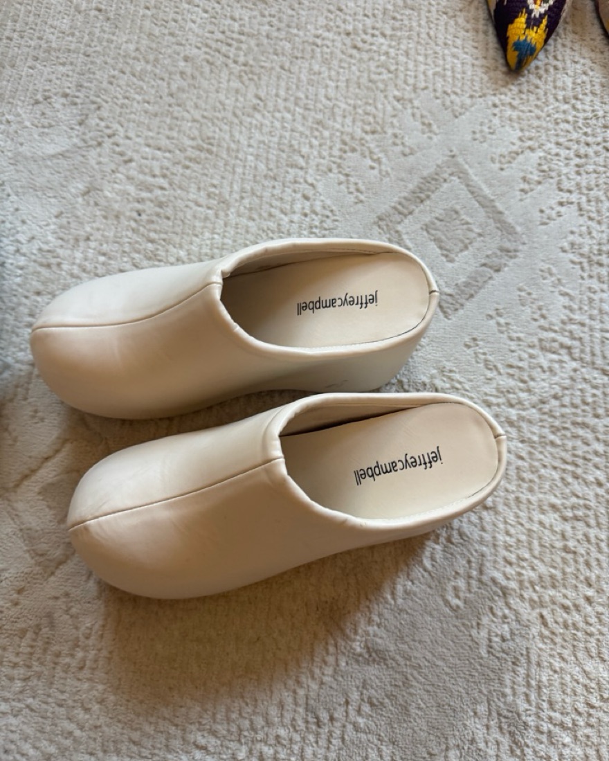Jeffery Campbell soft white leather heeled clogs in excellent condition