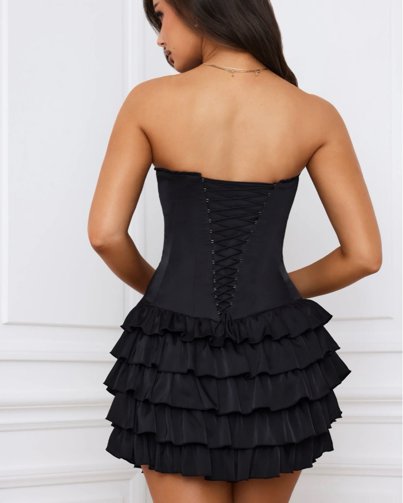 Bandeau Ruffled Tiered Corset Mini Dress – Black (Oh Polly, Size 0)