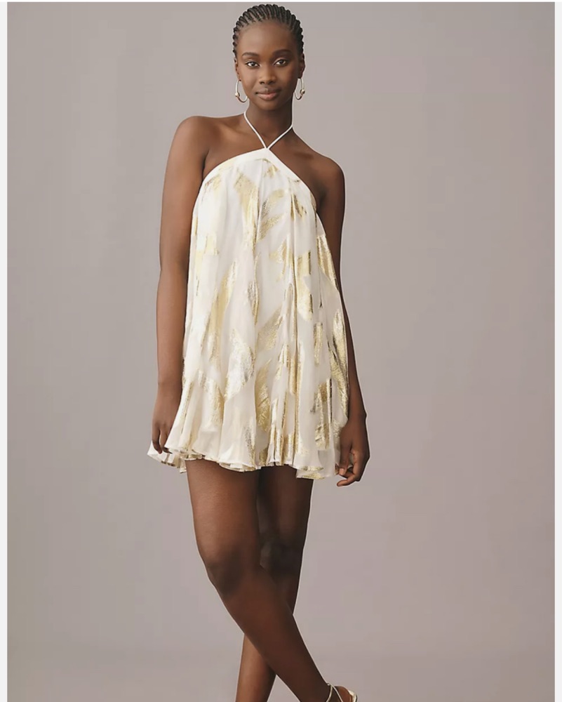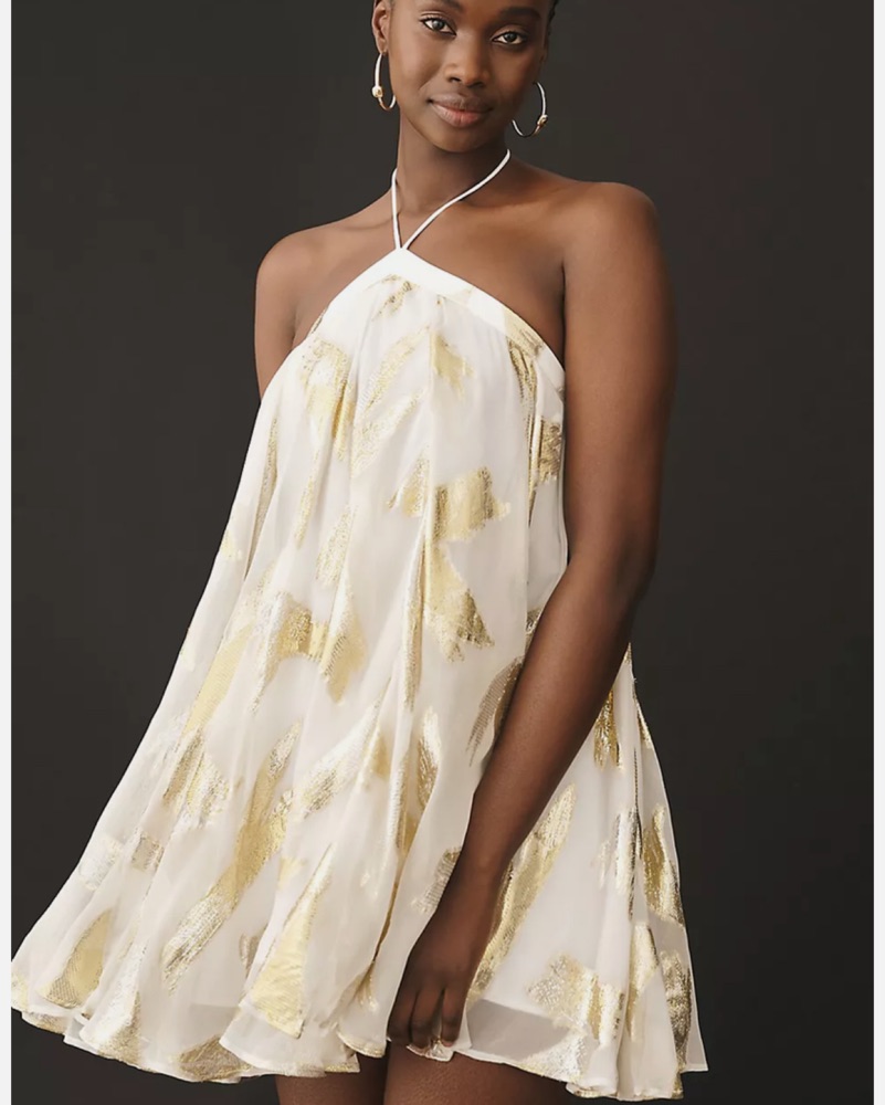 Anthropologie Gold And White Dress
