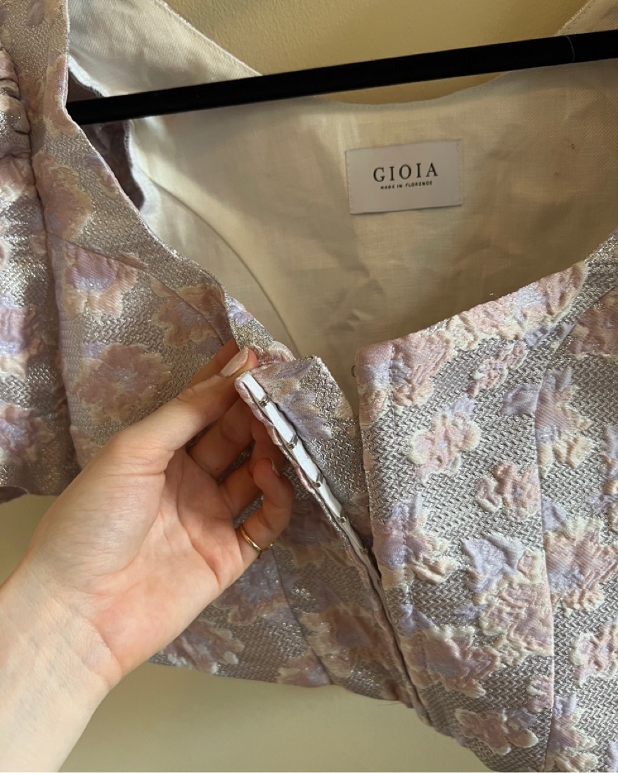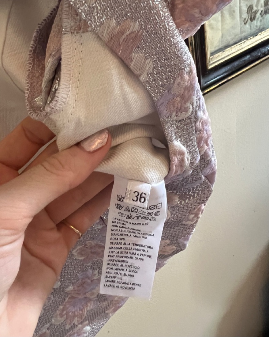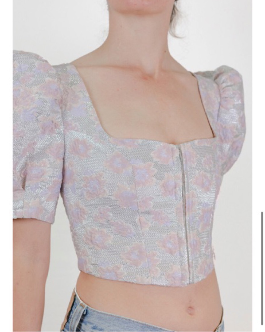 Silver and lavender puff sleeve corset top in excellent condition made of 100% silk from Italy