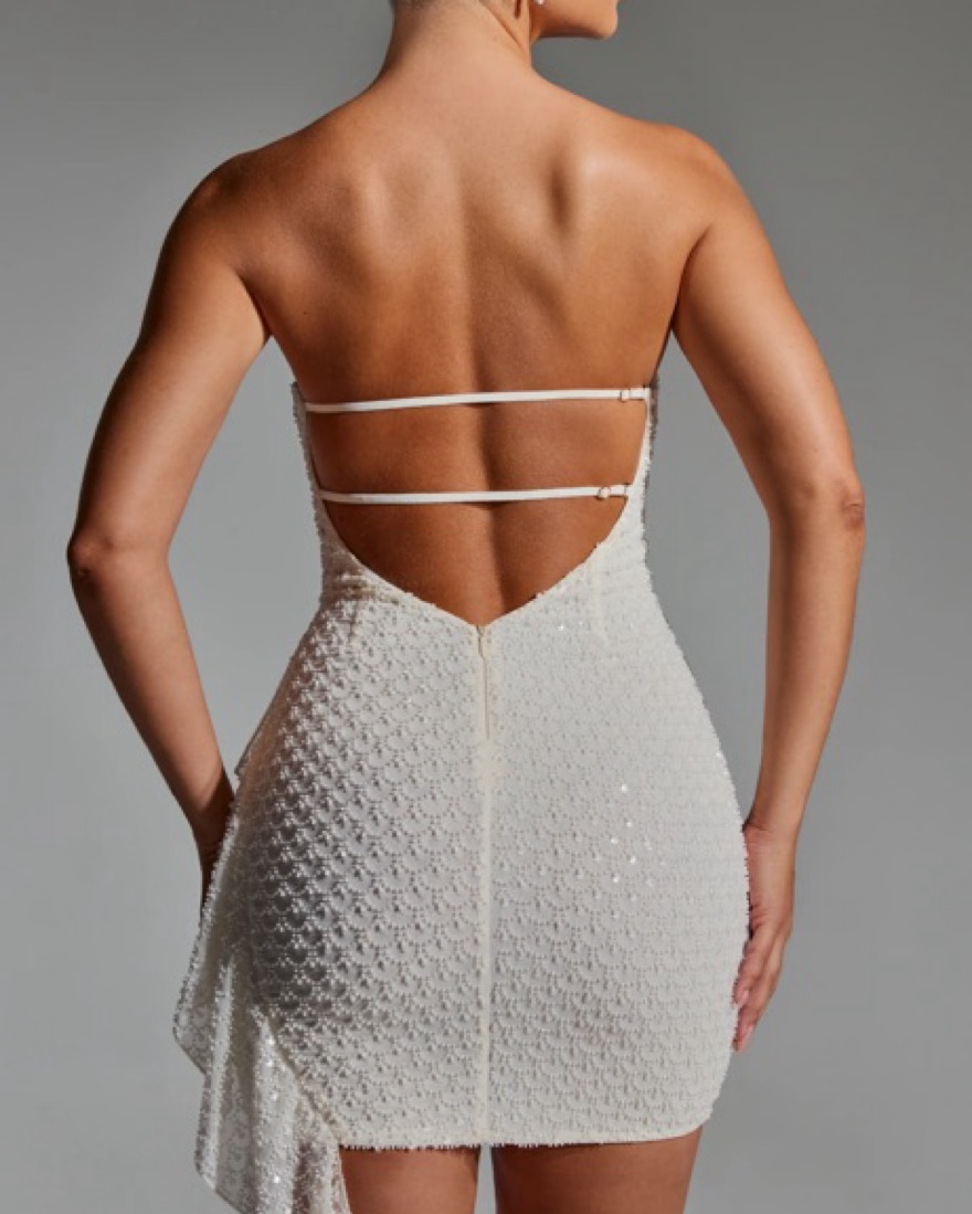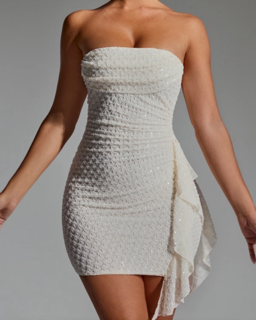 Worn Once! Perfect for night out or bachelorette party!! Embellished Ruffled Cowl-Neck Bandeau Mini Dress in White