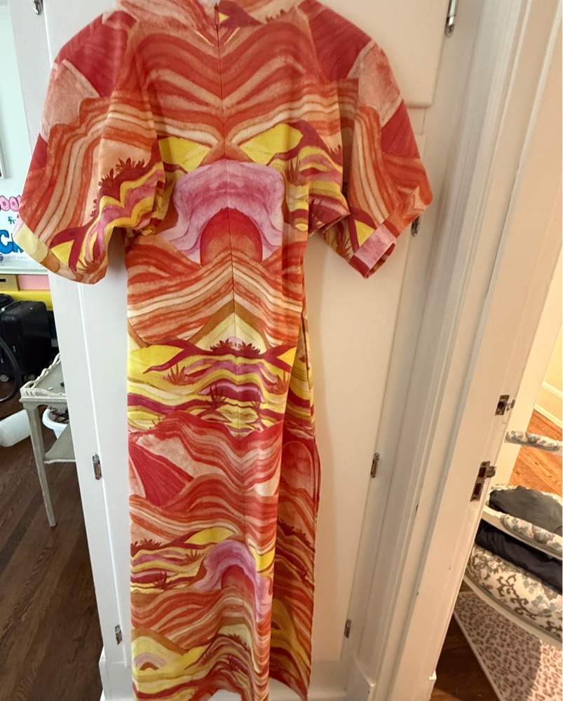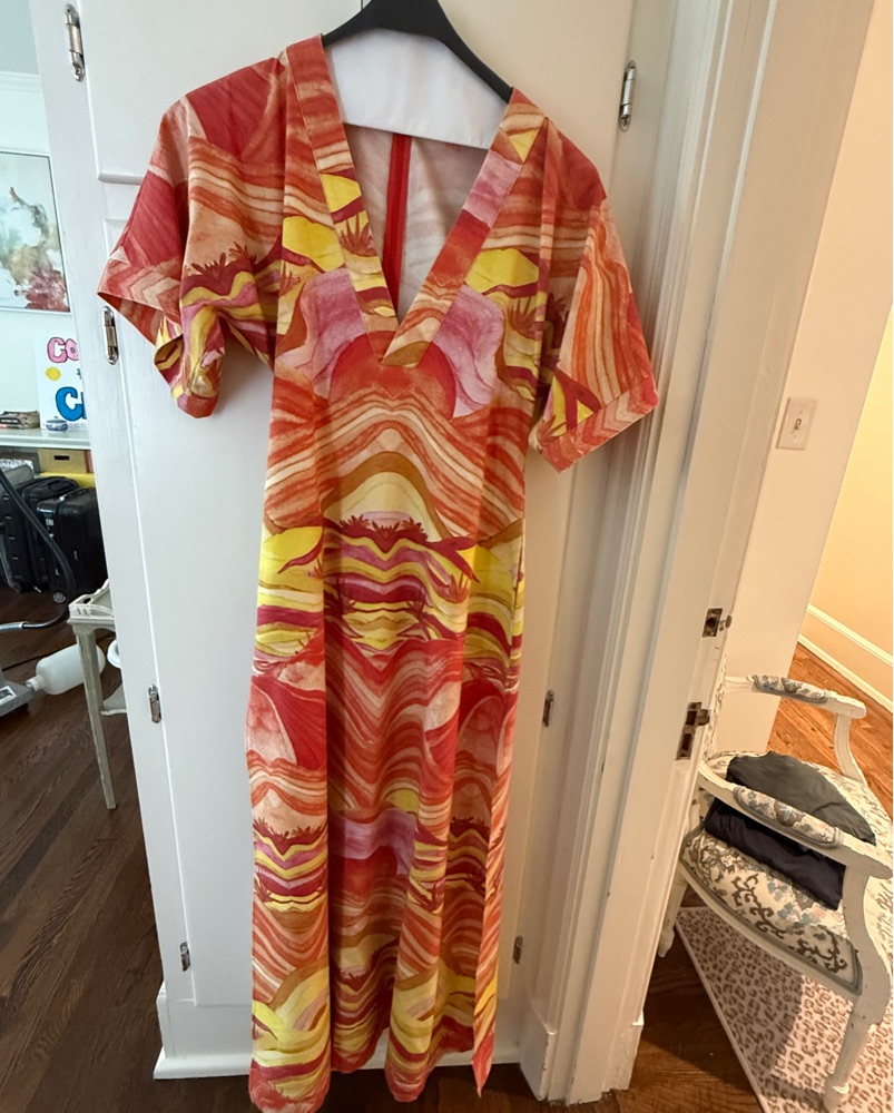 This bold and eye-catching maxi dress is perfect for a spring night or tropical vacation. The vibrant swirling pattern creates a mesmerizing visual effect that is sure to turn heads.
