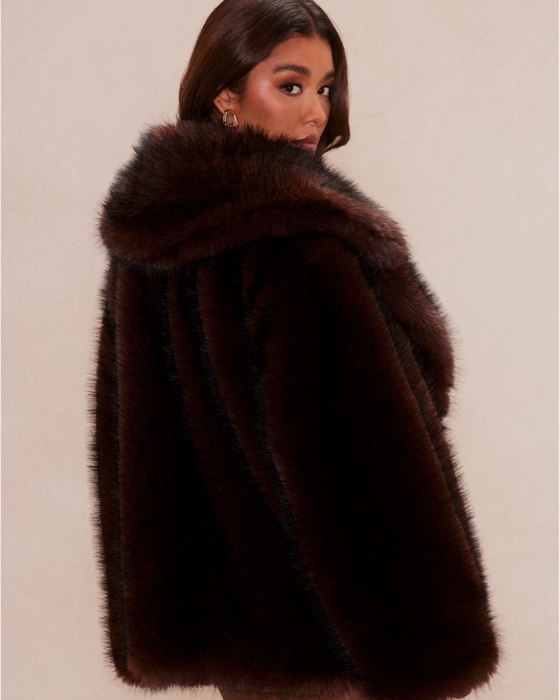 Brown Faux Fur Jacket by Fashion Nova - Pickle