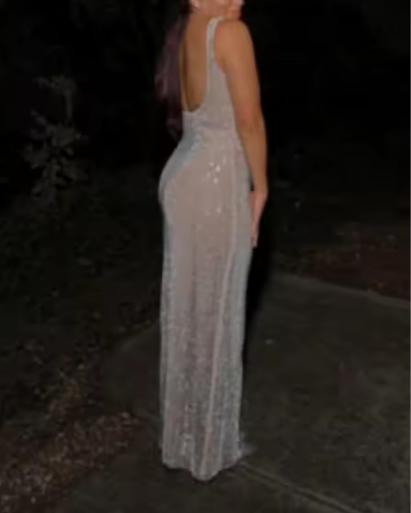 Hollow Out Open Back Sparkly Long Dress by ASOS - Pickle
