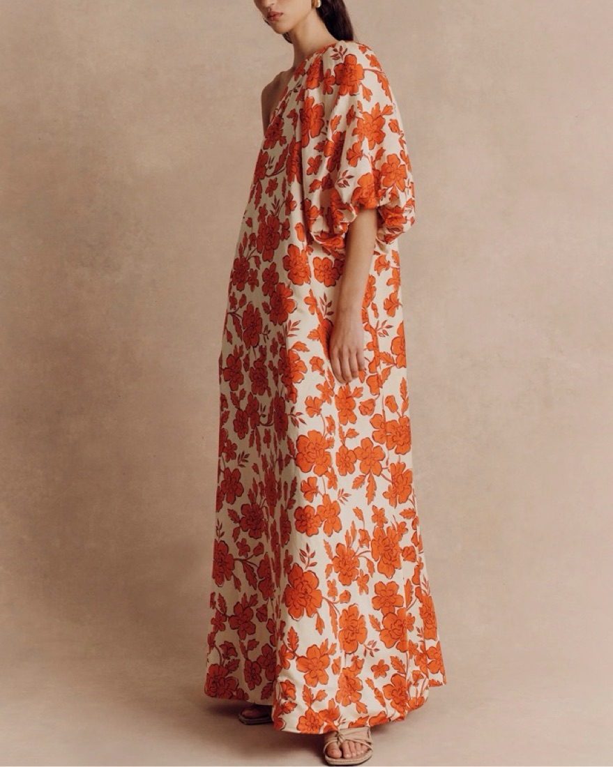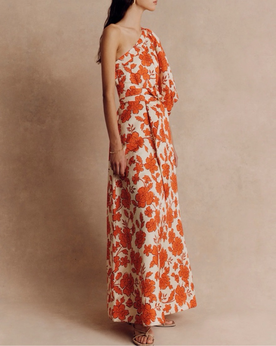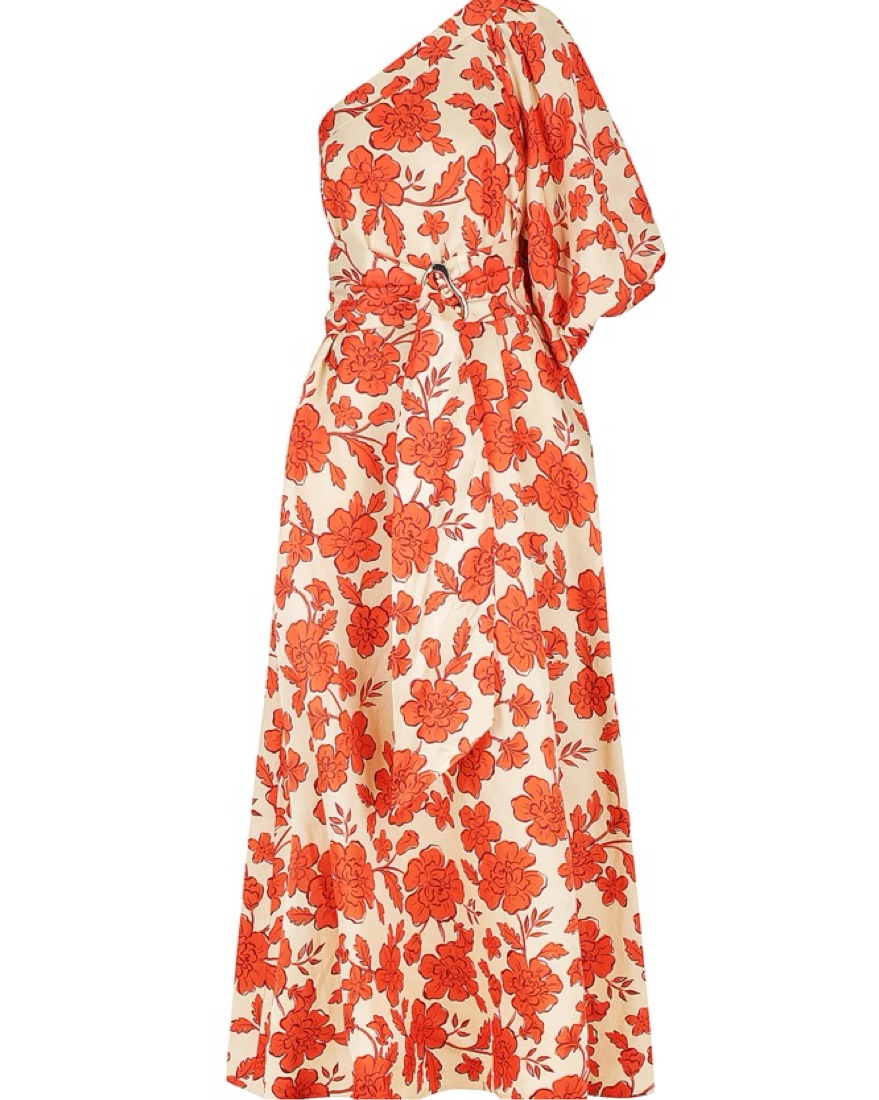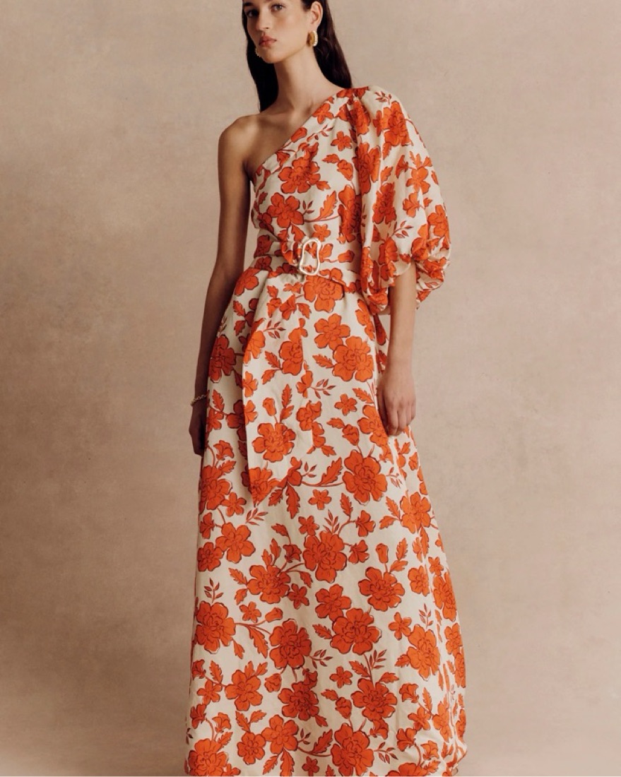 Hansen & Gretel - The Carmen Dress in Wild Flower is part With an asymmetric neckline and singular puffed sleeve, this dress is a showstopper. The belt is detachable. I am 5’2 and did get dress hemmed, also wearing 4” heels in pic!