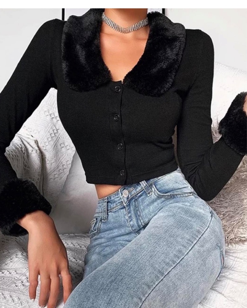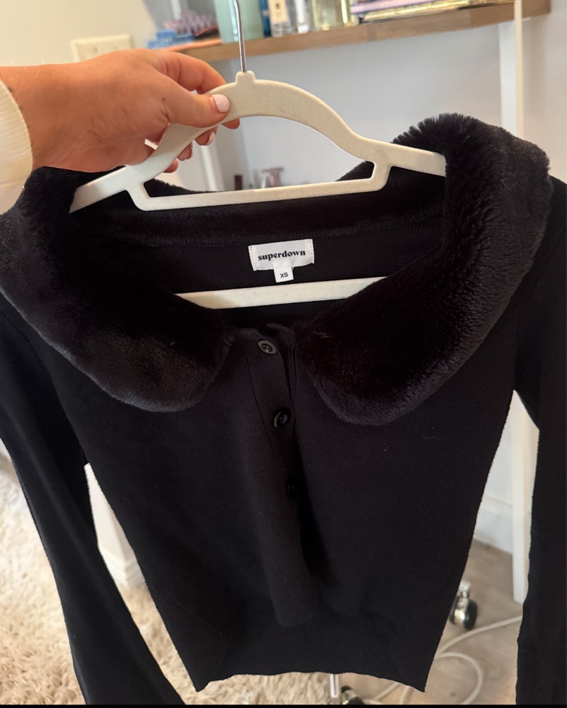 Adorable fur lined cardigan, slightly cropped, one of my favorite winter pieces!