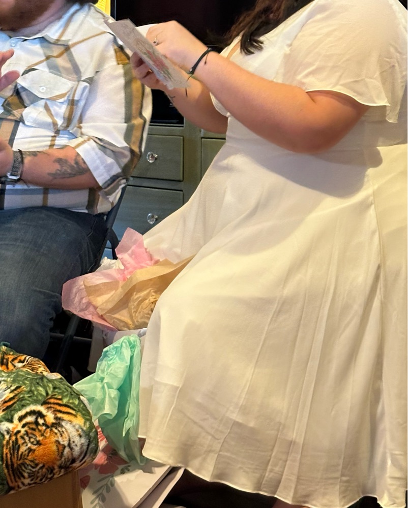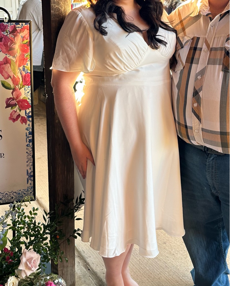 Dress from David’s bridal great for rehearsal dinner or bridal shower