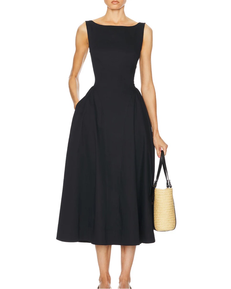 Runs a little small, fits XS/S. So flattering and sophisticated. Truly a perfect classy dress; Audrey Hepburn vibes