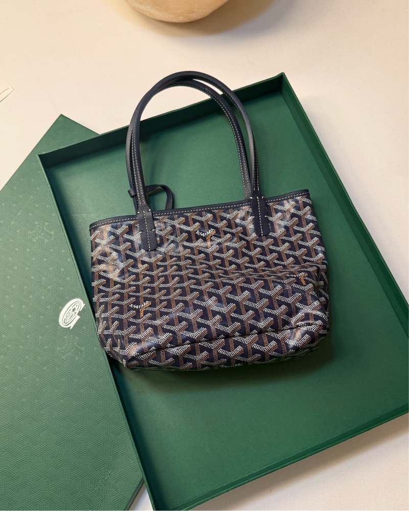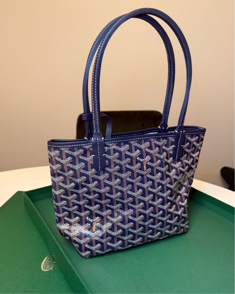 Dark blue goyard mini tote. Goyard Anjou. So cute and fun!