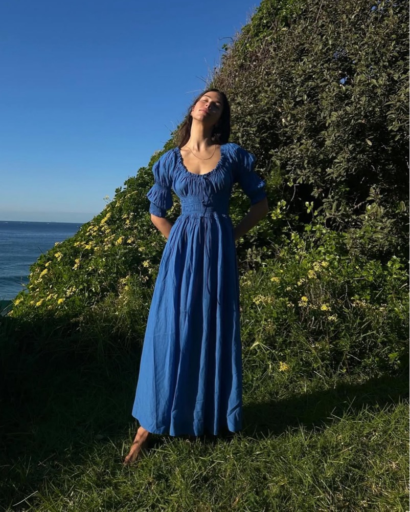 In a soft, lightweight blend of organic cotton and viscose, our beloved Ischia Dress—a Favorite Character that first made its debut in Spring 2021—features double-puffed sleeves and a scoop neckline adorned with petite ruffles and a functional center tie. A smocked bodice with an adjustable waist ti