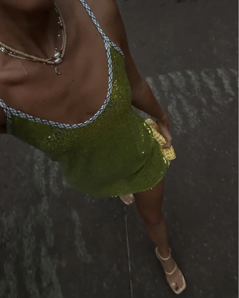 Handover Green Robers Mini Dress by HANDOVER - Pickle