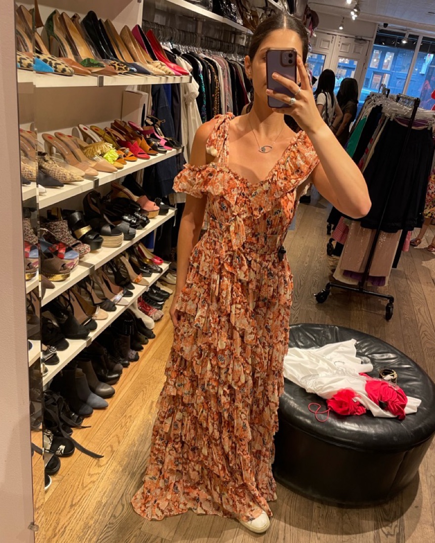 Ulla Johnson Florence Ruffled Silk Gown, fits a standard size 4/6! Perfect for black tie/formal weddings Can be worn off the shoulder on one side or with the sash tied (both styles pictured)
