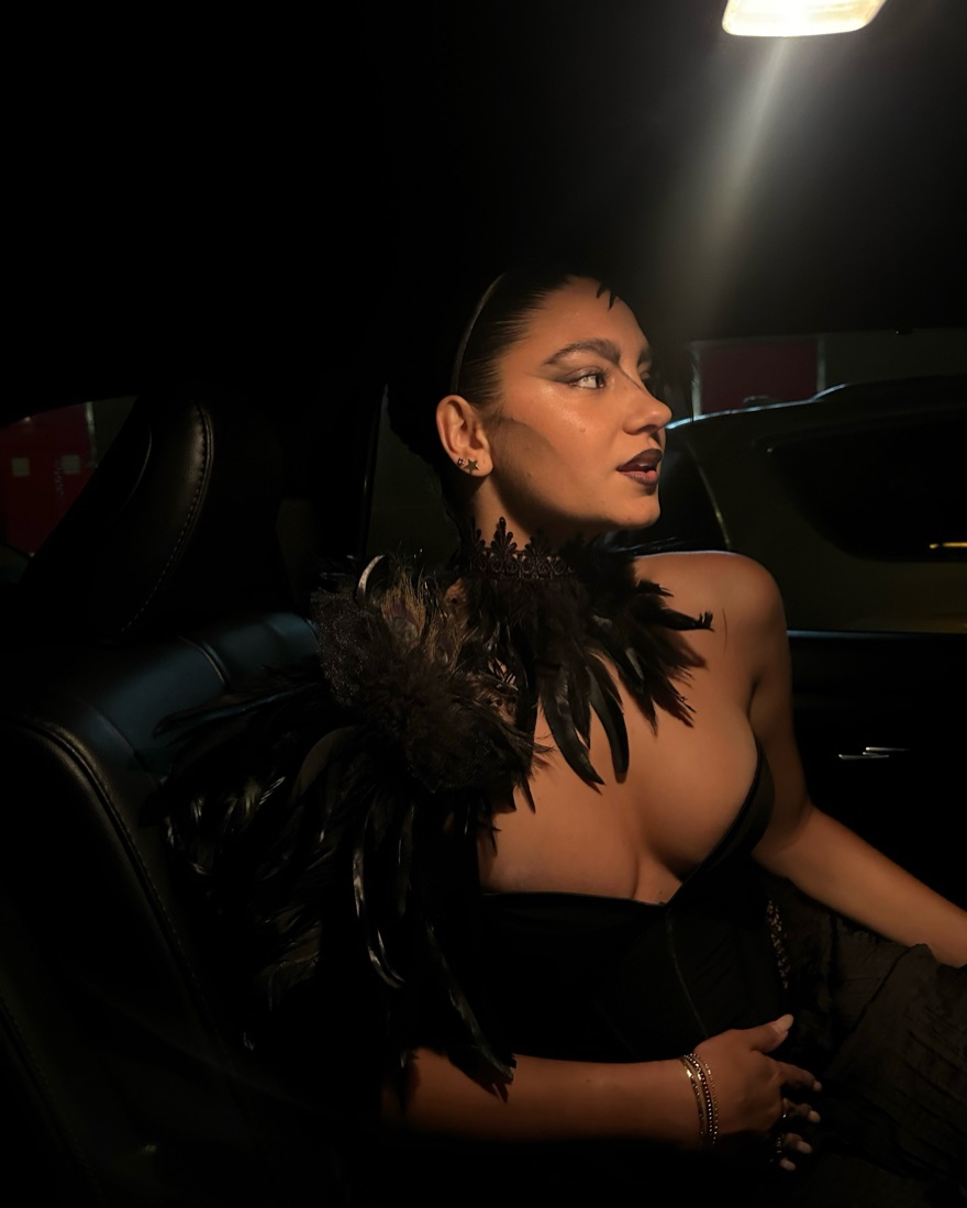 raven swan feather’s headpiece, shoulder pads, choker and glove (also includes black tulle skirt!)