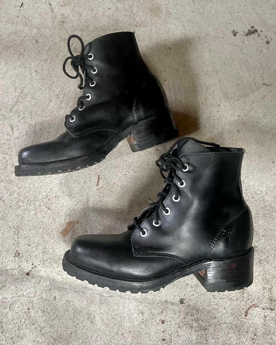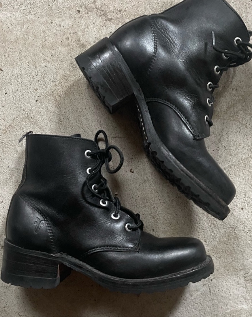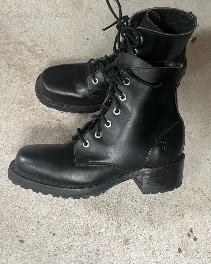 Beautiful vintage, made in USA Frye lace platform heeled combat boots. The original Sabrina design. Subtle swuare toe and lace closure. Has some light scuffs and signs of wear. Do not rent or purchase if normal wear bothers you :) US ladies size 5.5