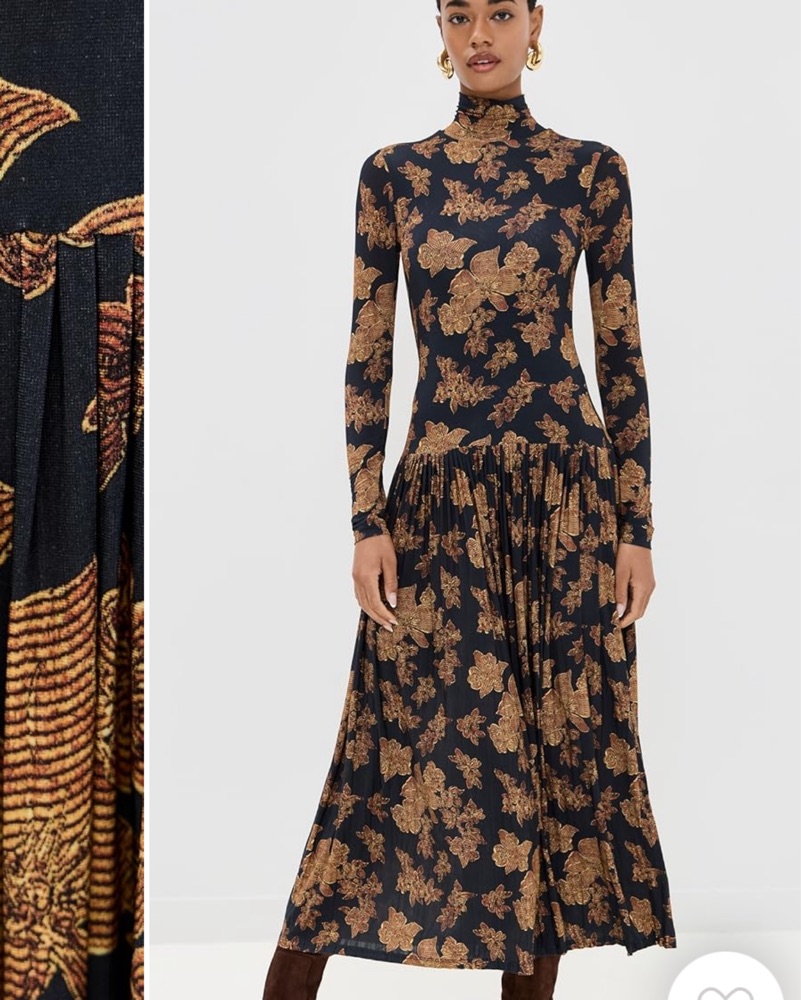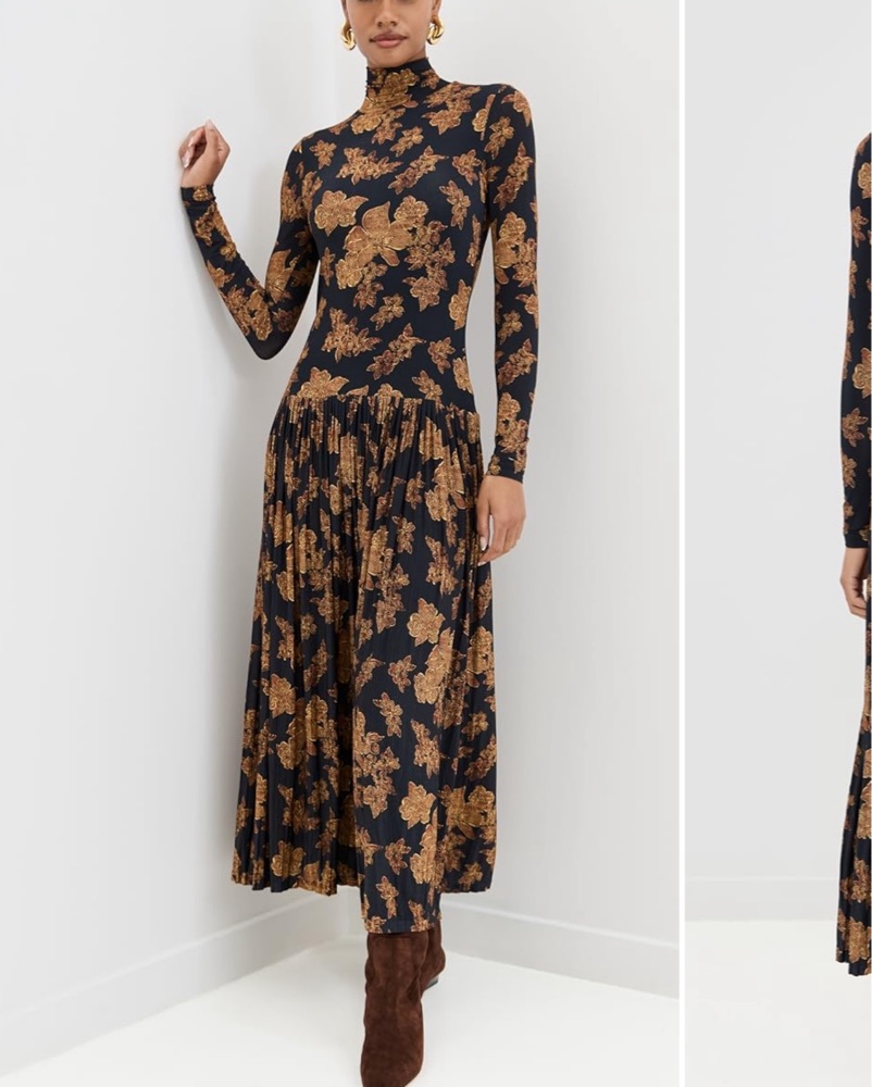 Floral Turtleneck Dropwaist Dress by Ulla Johnson - Pickle