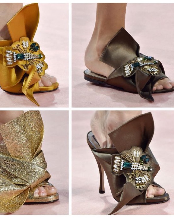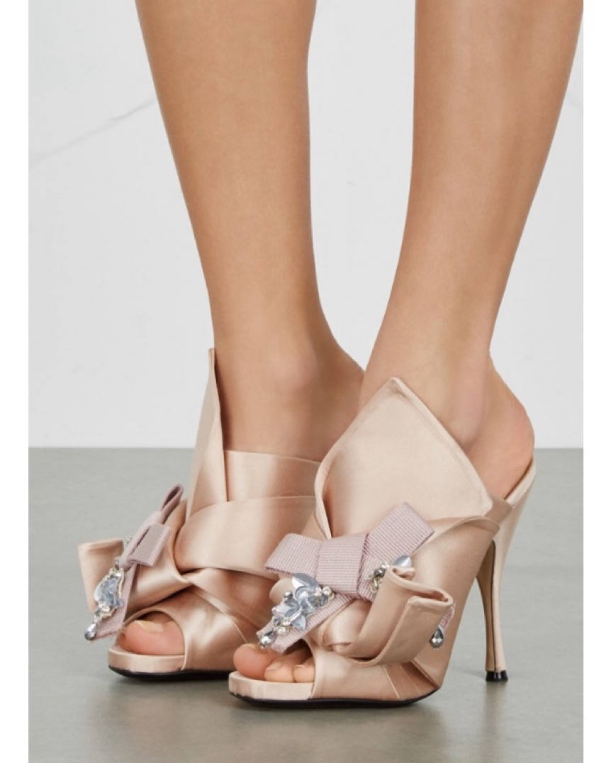 One look at this pair of N°21 mule sandals and our hearts skip a beat. These beautiful mules have been styled with perfection just so a diva like you can flaunt them. Beige in shade, the pair has been designed with big knots and embellishments on the satin uppers.