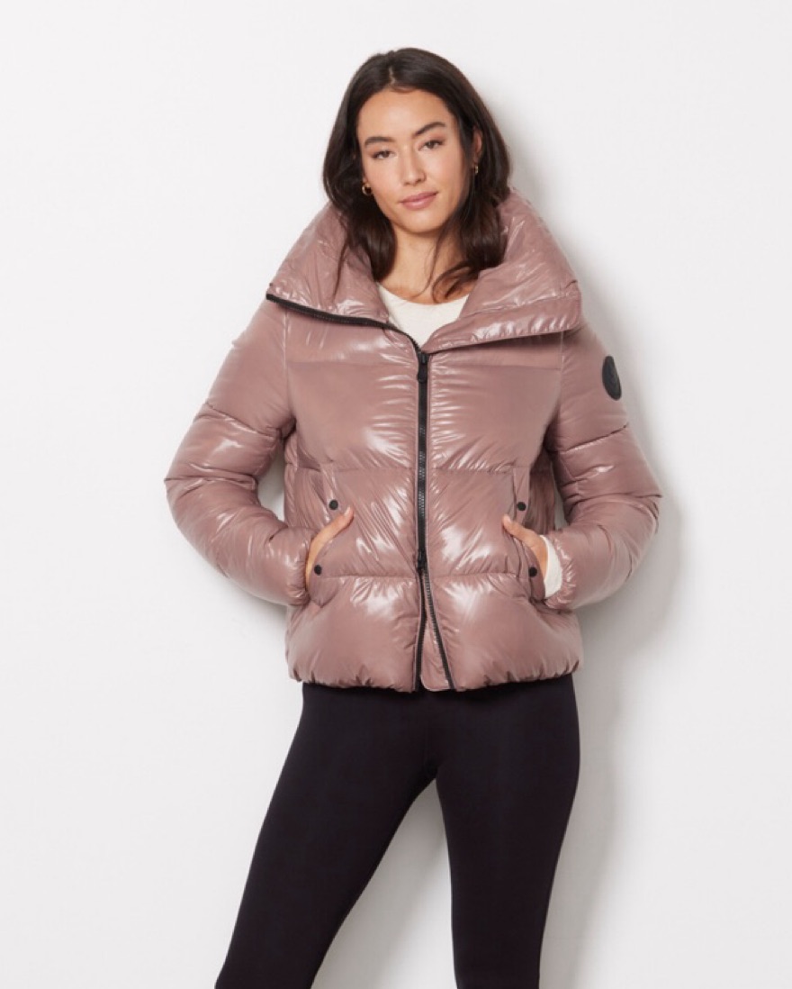 Save the Duck Isla puffer jacket in color “withered rose” (dusty rose/muted lavender color in person). fun & warm winter coat from sustainable brand, worn once