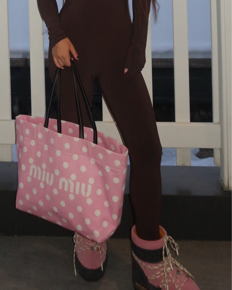 Cute pink miu miu polka dot tote! Please take good care