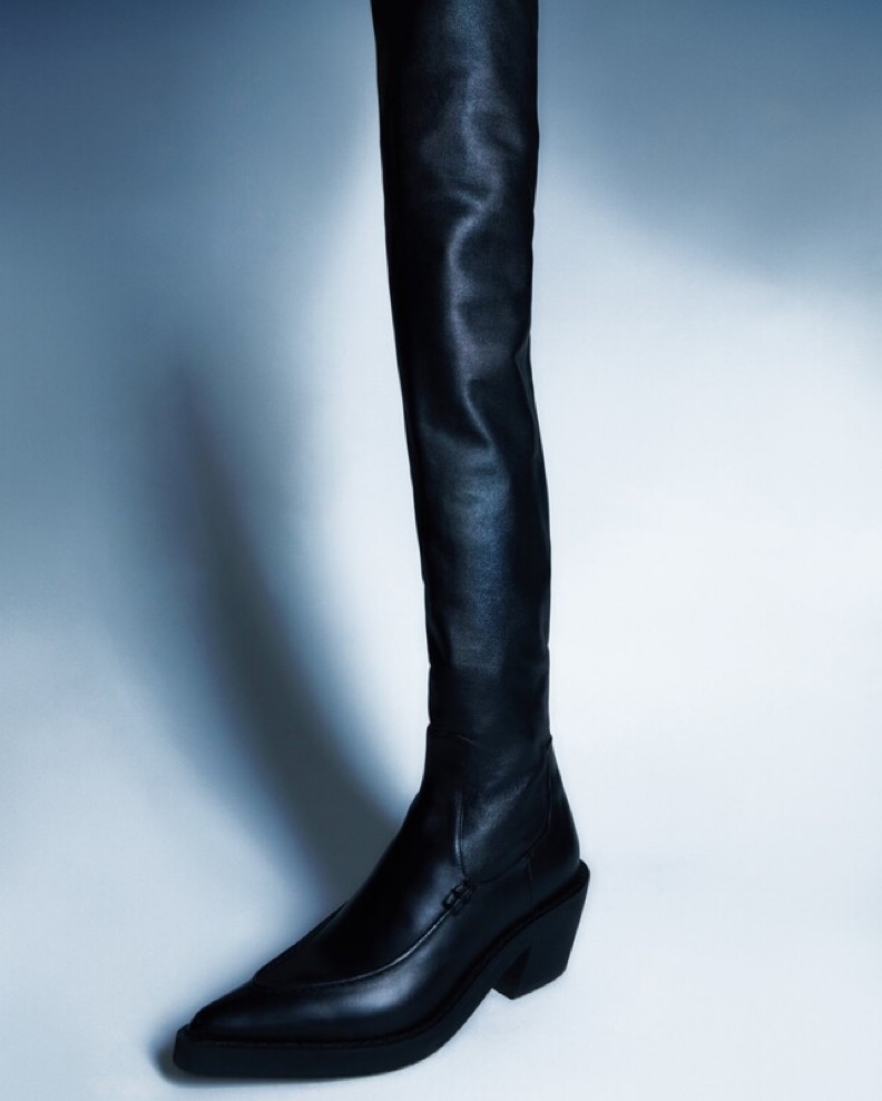 Debuting with the Fall/Winter 2021 collection, this sleek boot combines a streamlined shaft of stretch-infused lambskin with a substantial heel for wear-all-day comfort. Italian craftsmanship is revealed in the impeccably constructed silhouette. Worn once, in perfect condition. EU 40.5