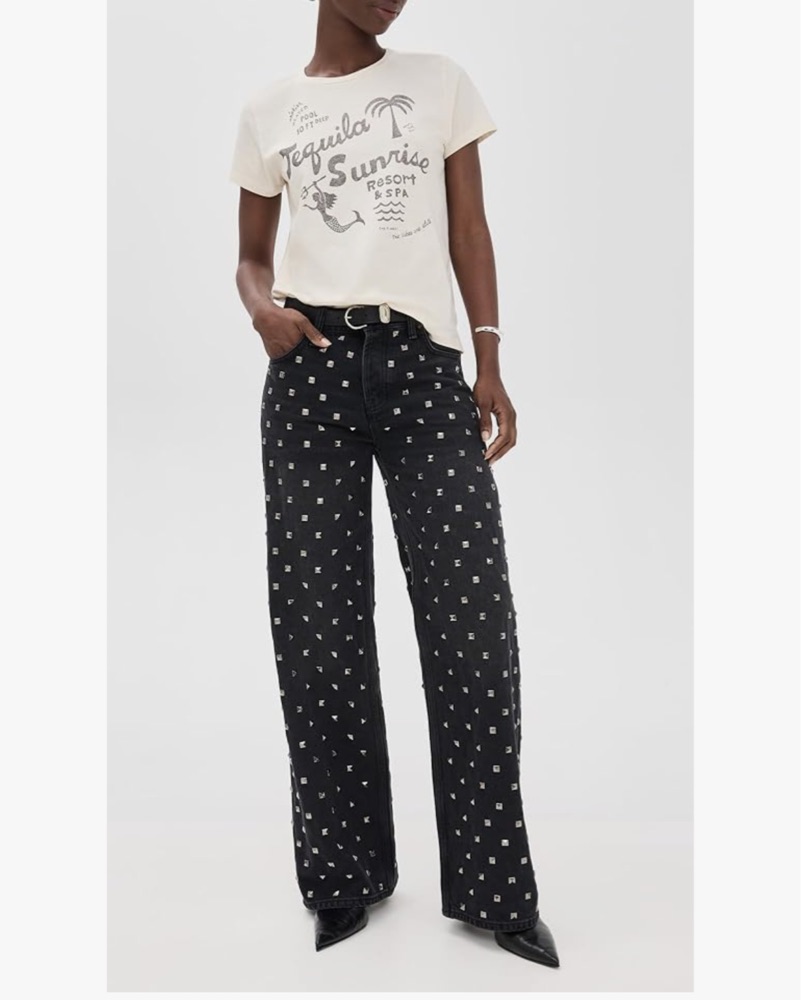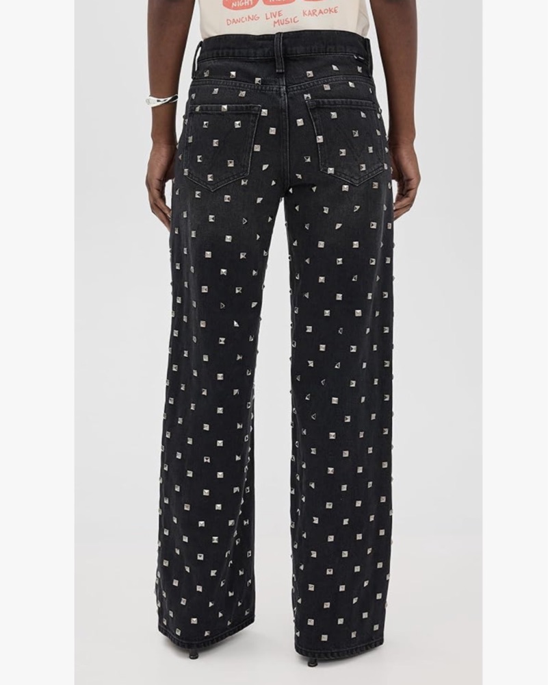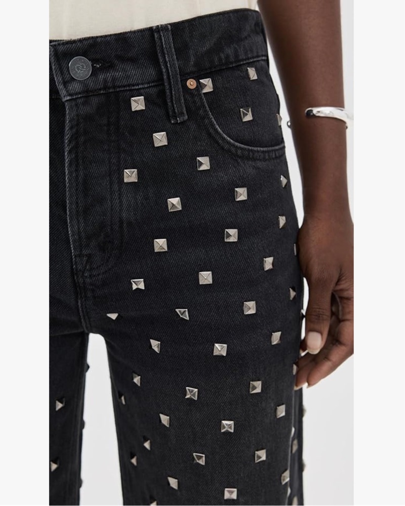 Black denim jeans with silver studs all over