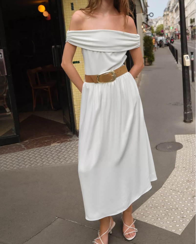Elegant Off-the-Shoulder White Midi Dress by Zara - Pickle
