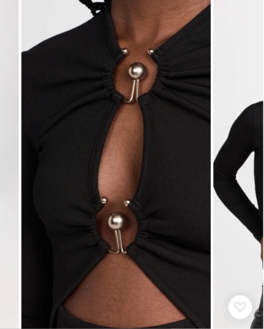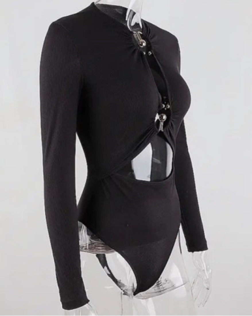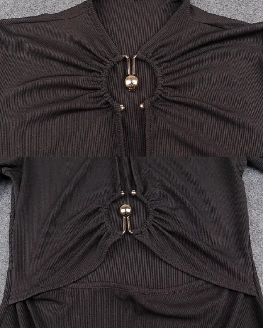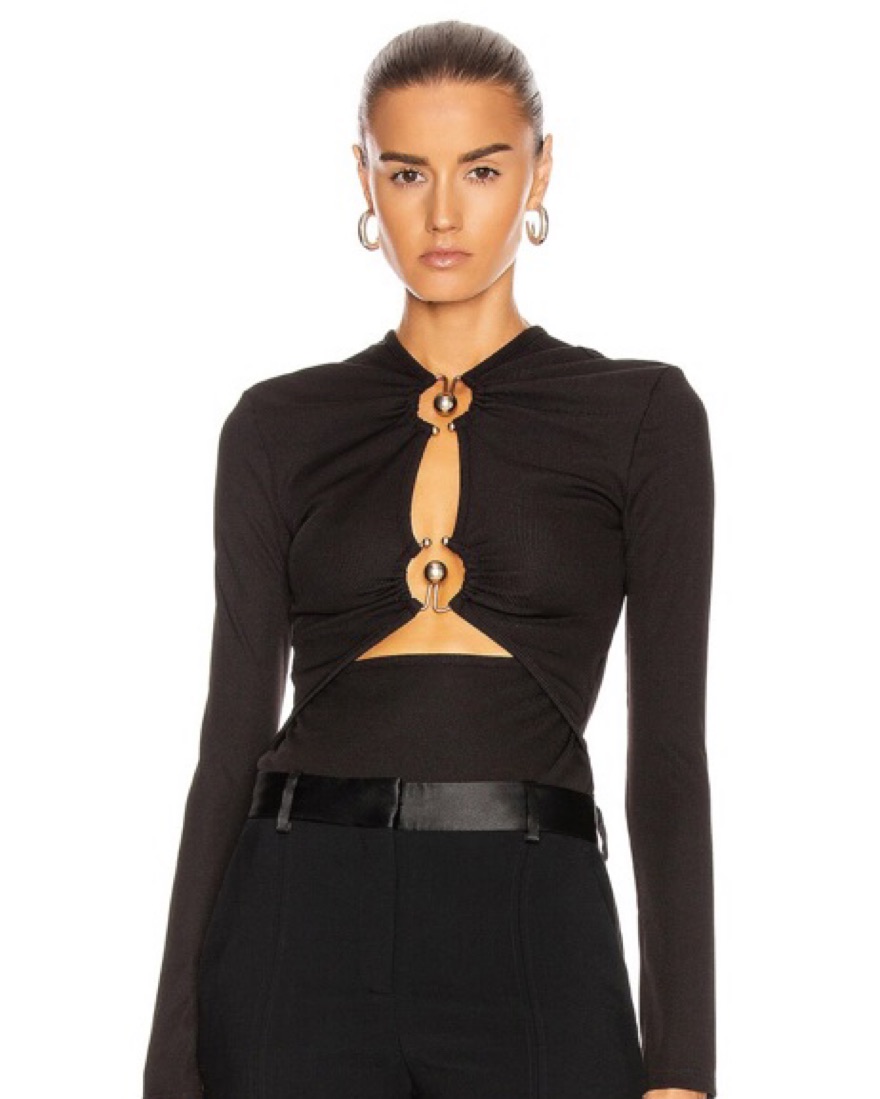 Size xs Fabric: Lightweight ribbed knit Metal ring details and cutouts at front U neck and long sleeves
