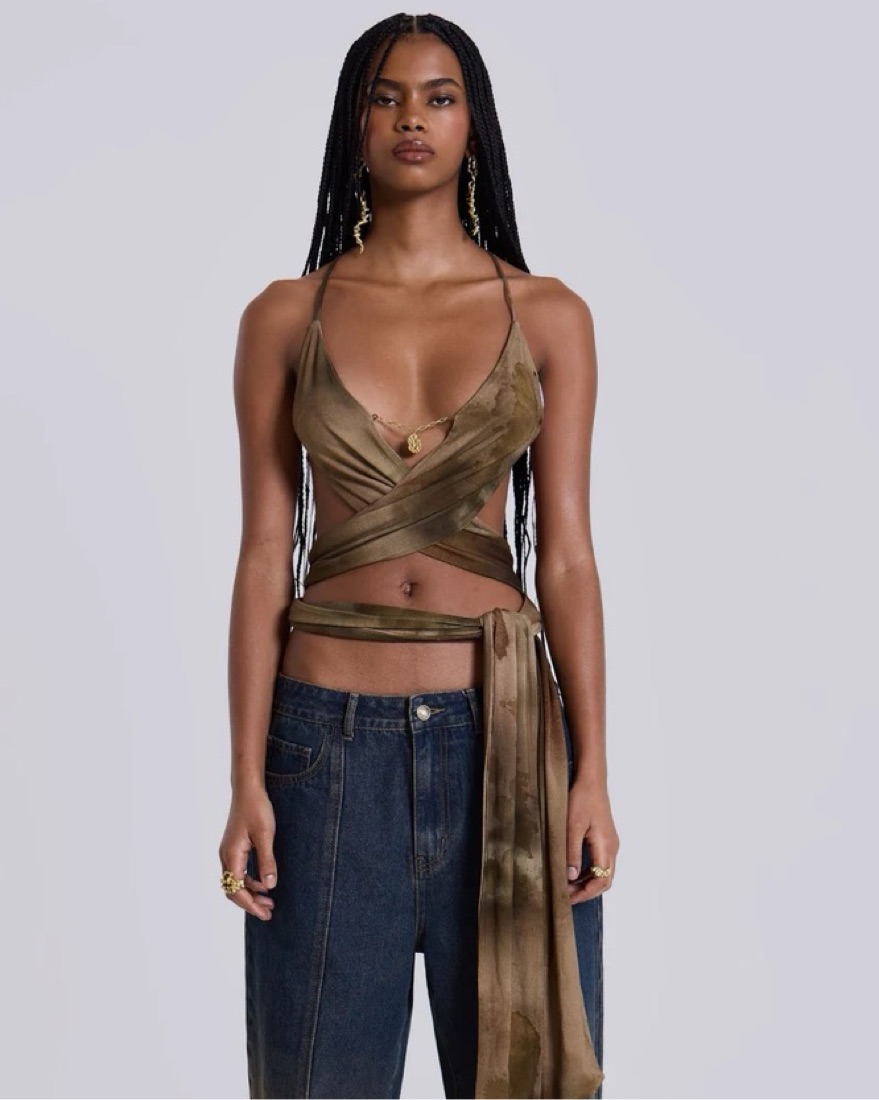 Ayla Backless Plunge Wrap Top S/M