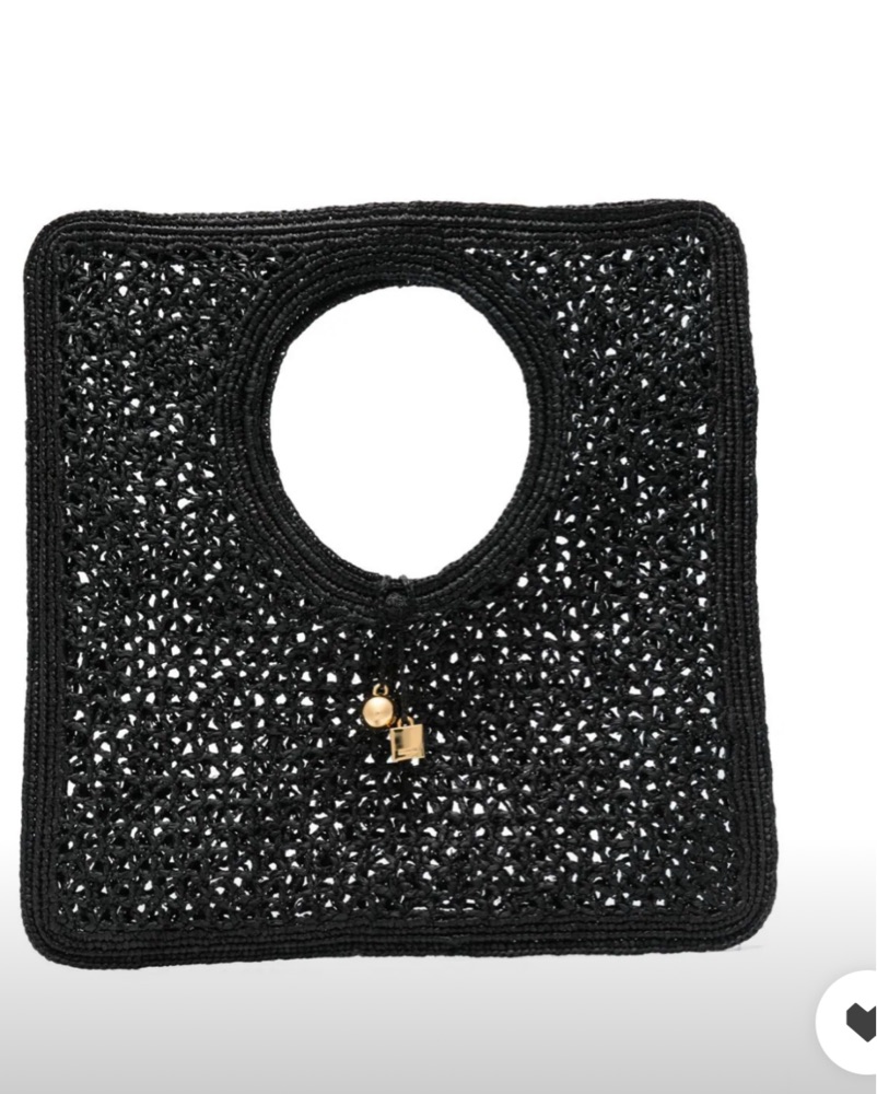 The Jacquemus Spiaggia tote blends casual elegance with its Italian-crafted black woven raffia, cut-out handle, and spacious, unlined design—perfect for sun-soaked days and comes with a protective dust bag.