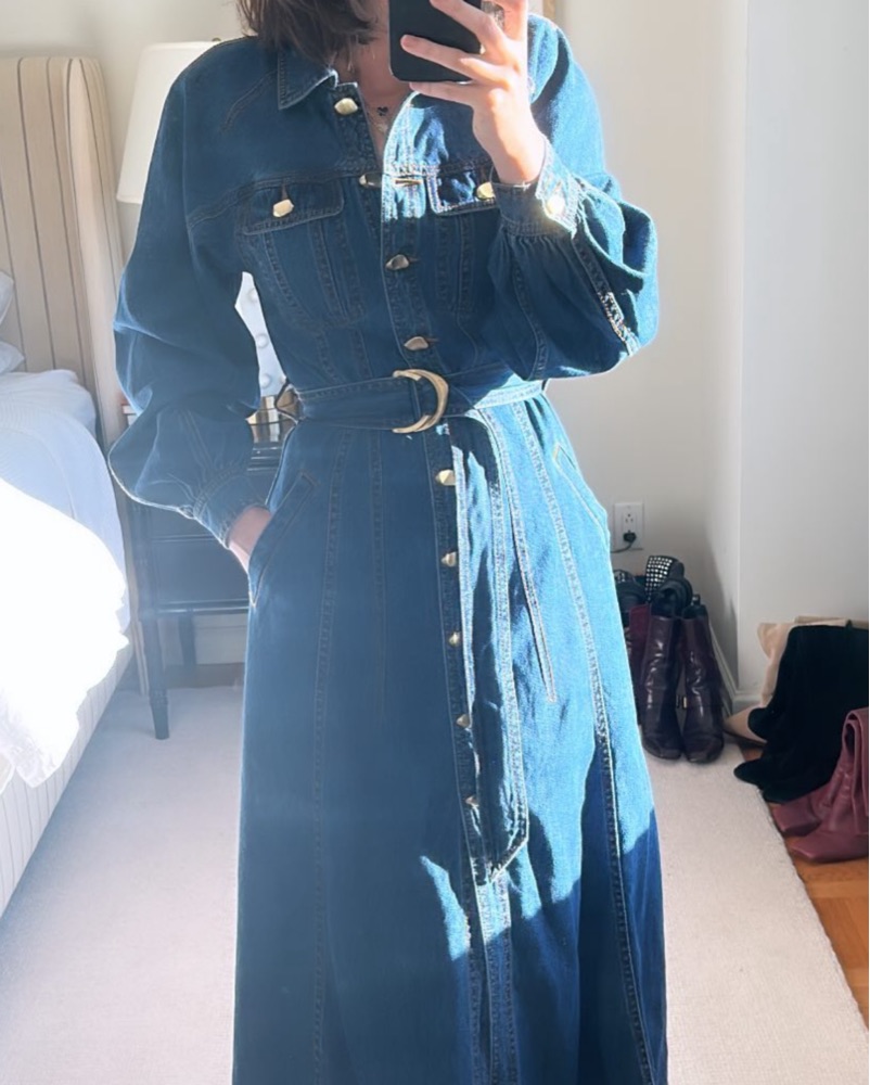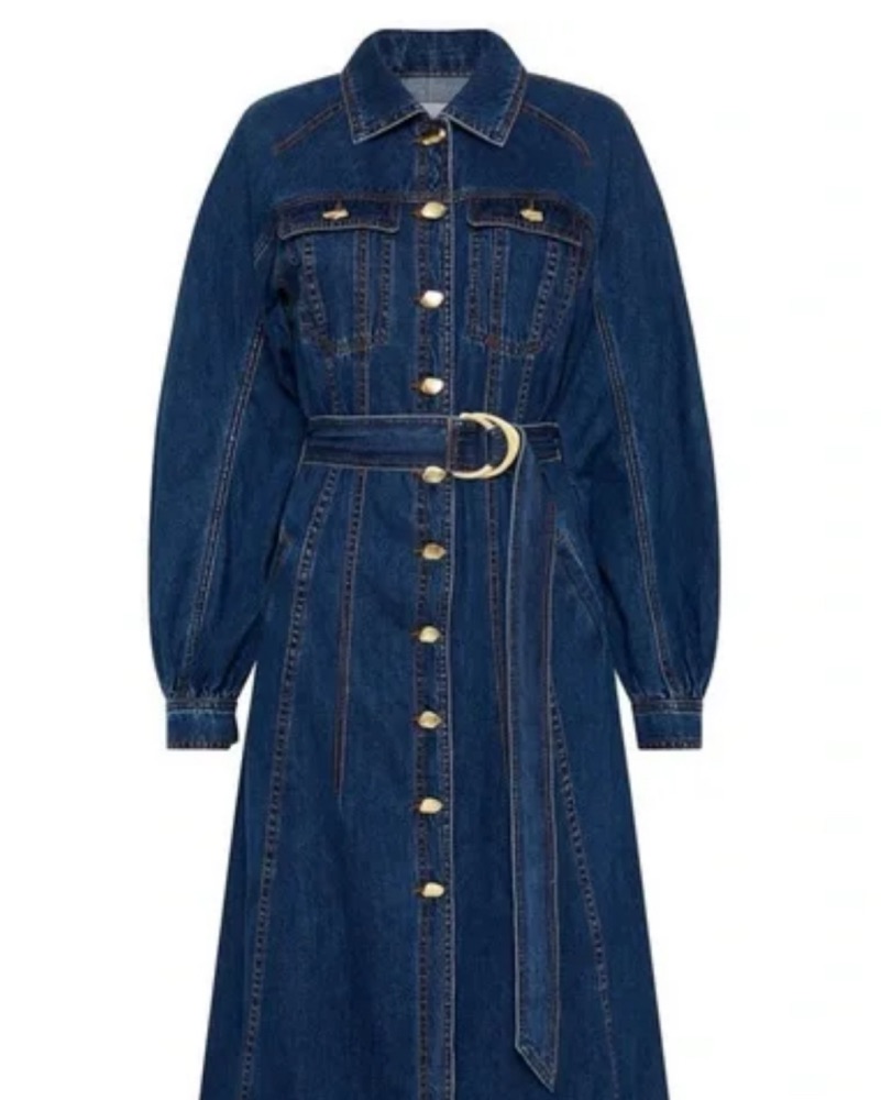 This chic denim midi dress features puff sleeves and a belted waist, making it a versatile option for any occasion. Australian size 4 fits like a size 2.