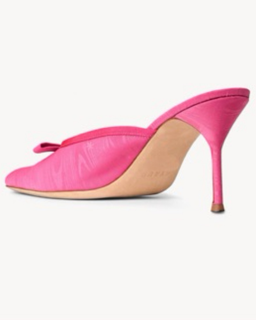 the CUTEST pink bow slip on heels from STAUD. I haven’t even worn these yet but perfect for Valentine’s Day and spring approaching :) European size 41 but can fit a US size 9-9.5-10