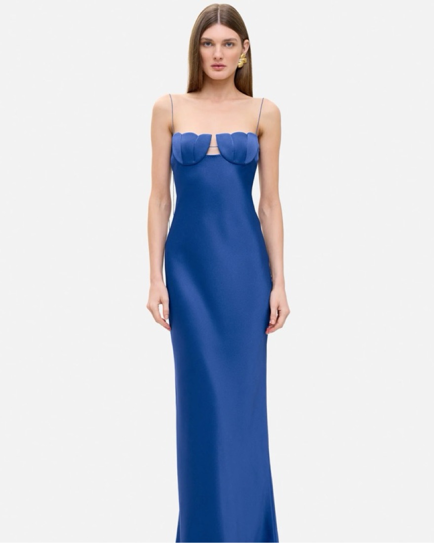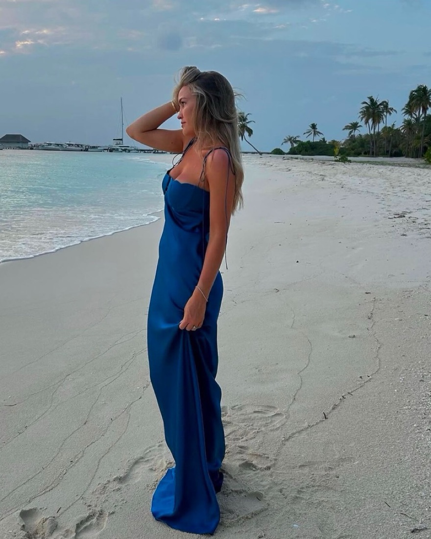 The brand recommends sizing down if you’re in between sizes. This dress fits sizes XS-S, I have also Anna October available in other sizes and colors: Yellow (S), Pink (S), Light Blue (M). #Wedding guest, #maxi dress, #long blue dress, #annaoctober
