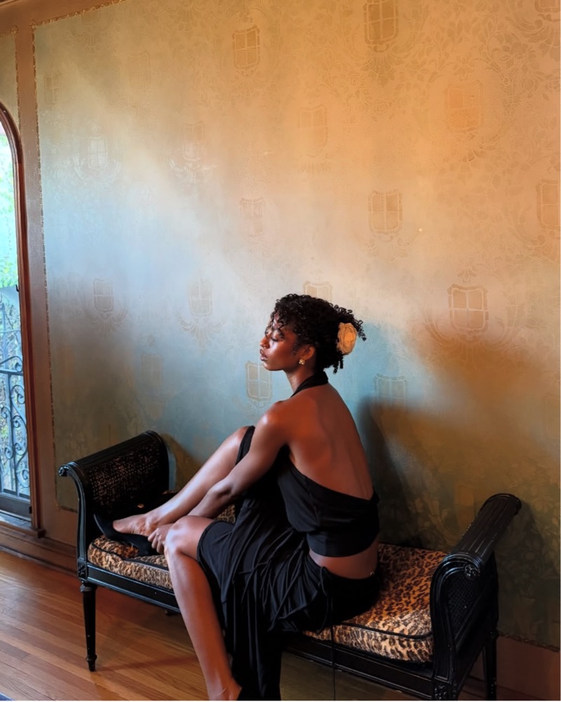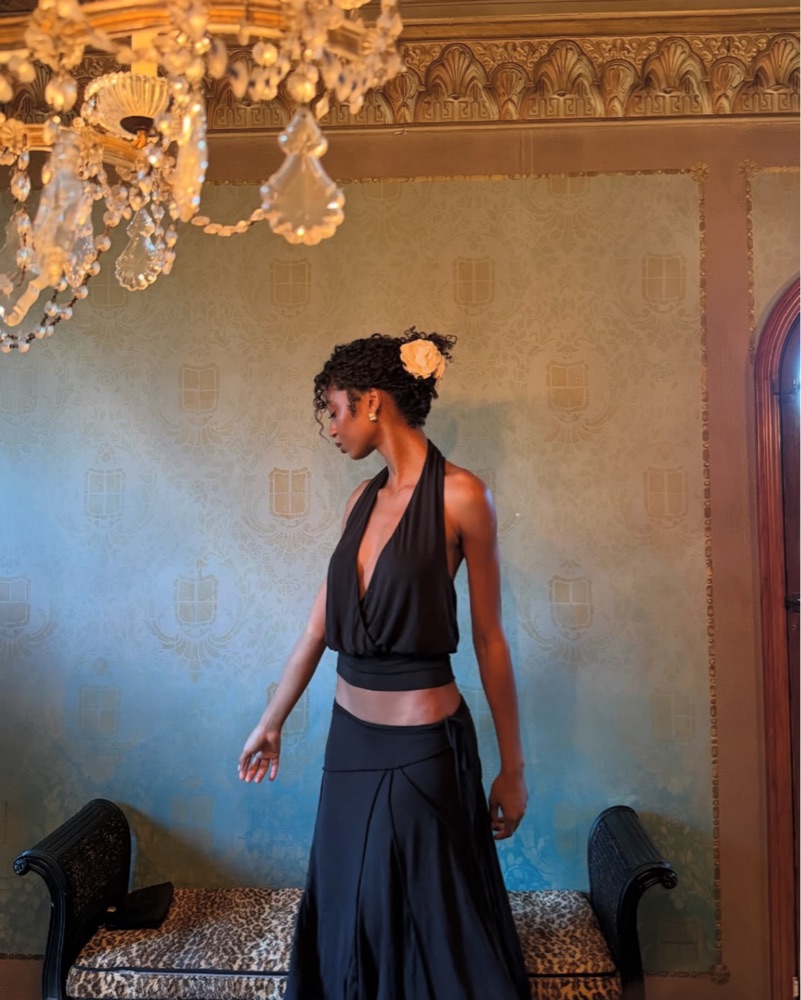 the most flattering little black top! with some chunky jewelry and a low rise bottom this is the best bar/going out/date outfit. runs large so if you’re an xs I would recommend sizing down to the XXS.